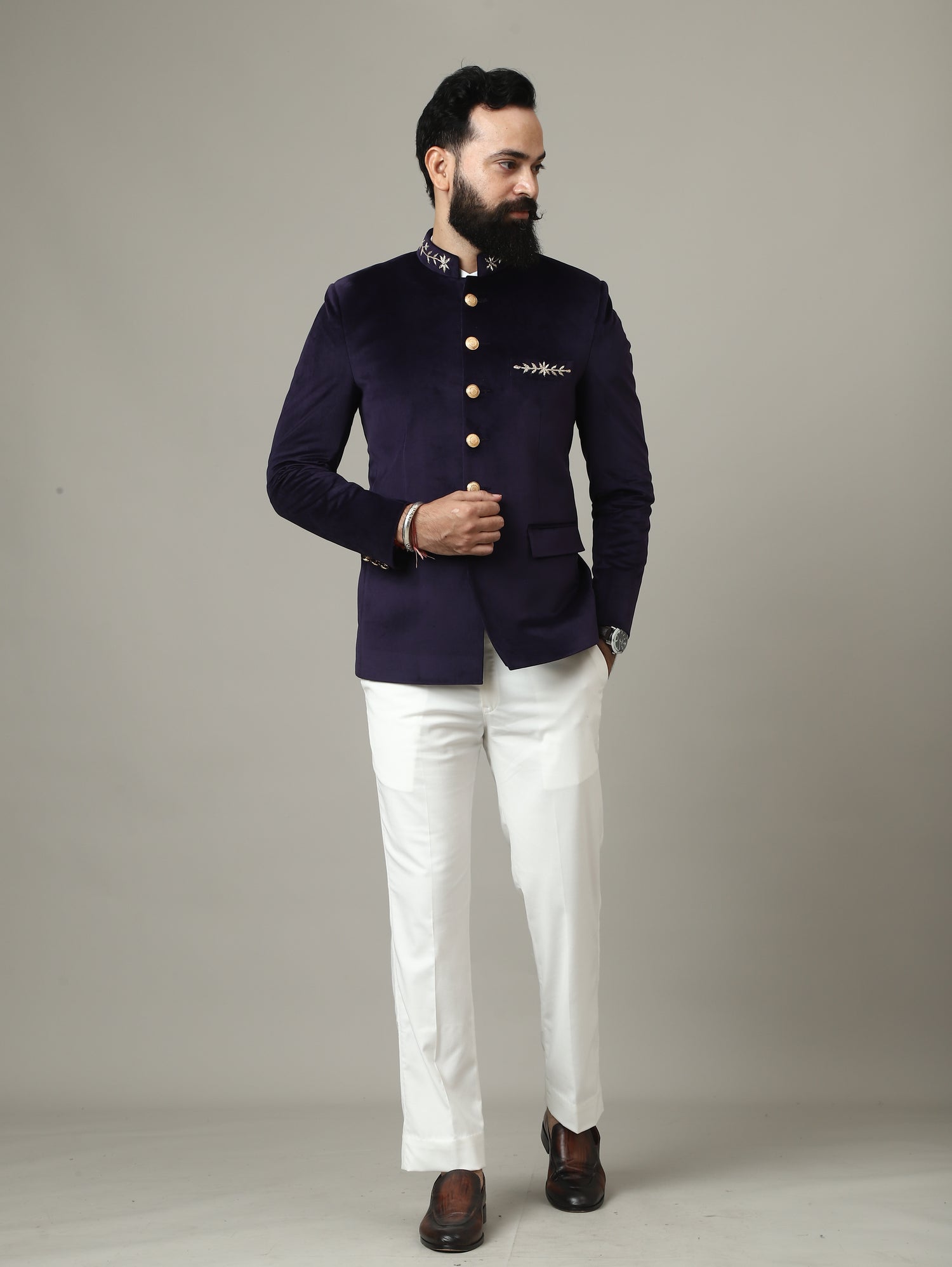 Purple Hand Embroidered Bandhgala with Ivory Pants | Reception & Wedding Wear