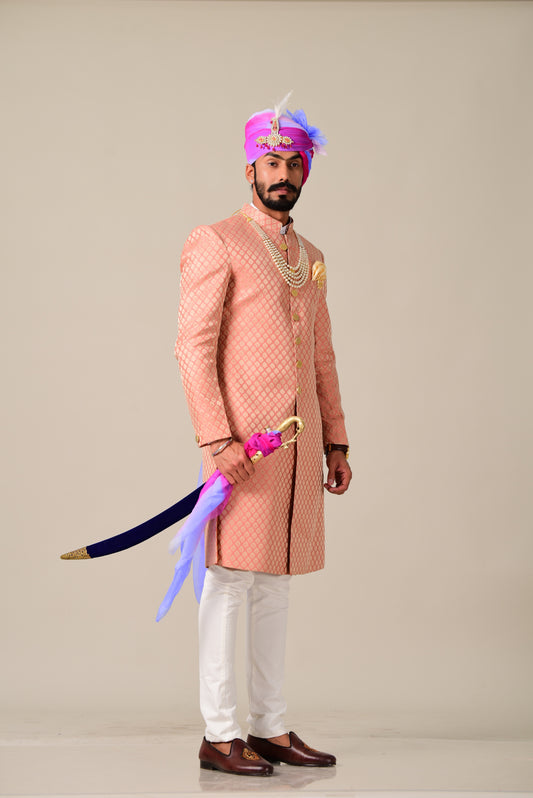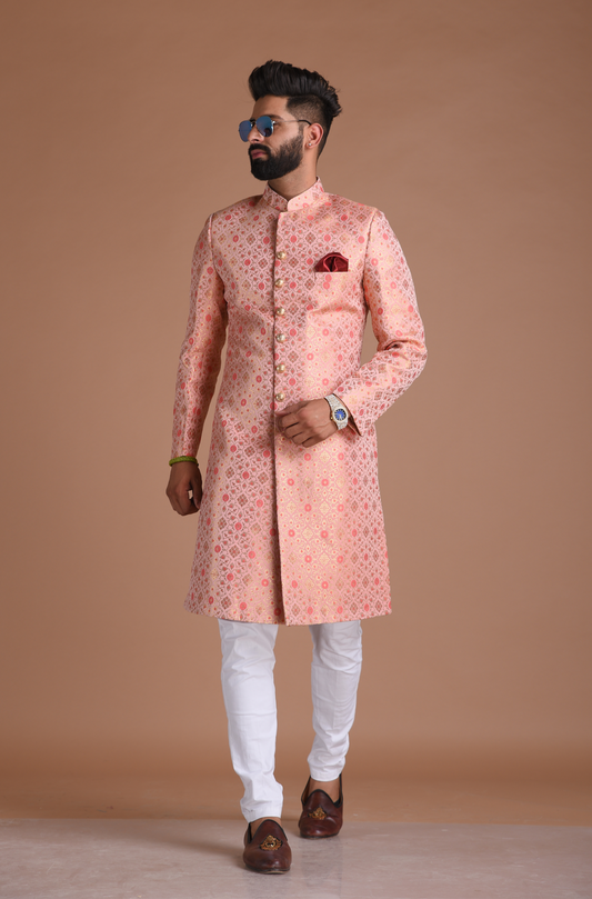 Royal Ballet Pink Brocade Silk Sherwani