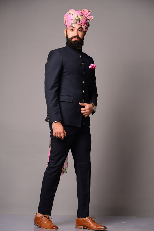 Bespoke Navy Blue Jodhpuri Bandgala Suit for Men