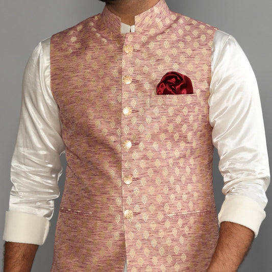 Banarasi Brocade Embroidered Nehru Jacket With Off White Silk Kurta Payjama-Handcrafted