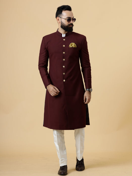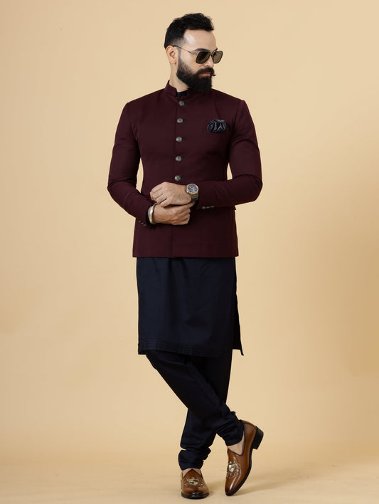 Stunning Wine Jodhpuri Bandhgala With Navy Blue Kurta Pajama