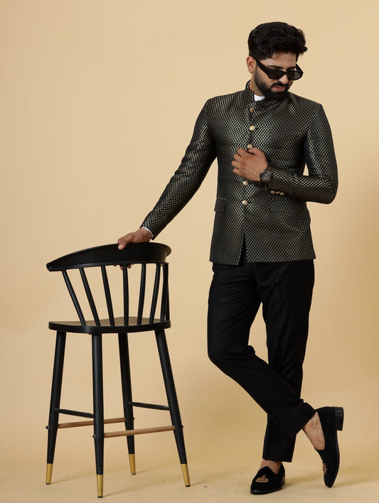 Bespoke Black Brocade Silk Jodhpuri Bandhgala for Men