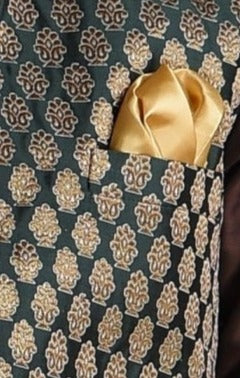 Jaipuri Booti Pattern Dark Green Brocade Silk Jacket with Kurta Pajama Set