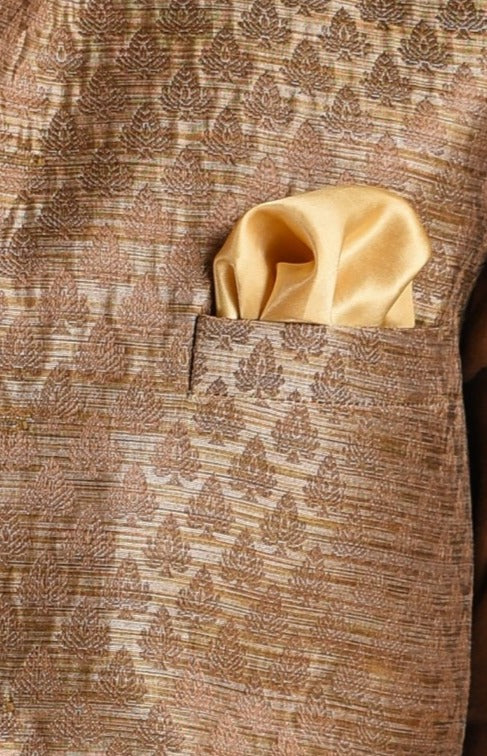 Jaipuri Booti Pattern Brown Half Jodhpuri Jacket with Kurta Pajama Set