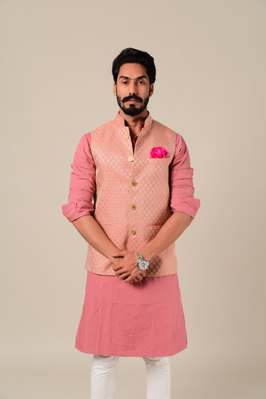 Ballet Pink And Golden Brocade Half Jodhpuri Jacket