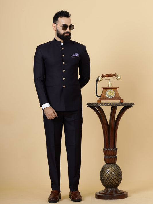Velvet Navy Blue Color Jodhpuri Bandgala with Trouser