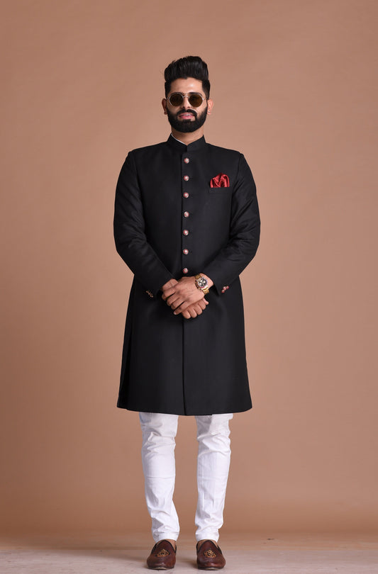 Handmade Royal Black Maharaja Style Achkan