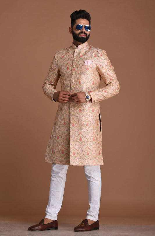 Lucknowi Heavy Embroidered Light Pink Royal Sherwani