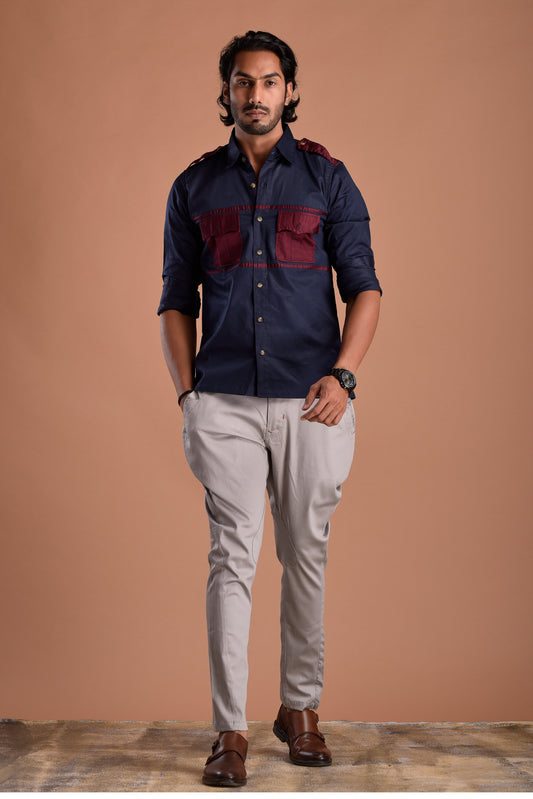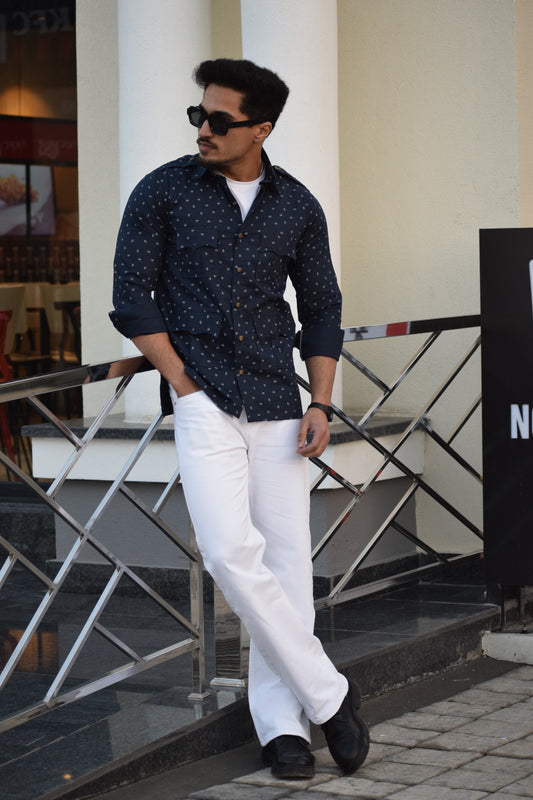 Abstract Print Blue-Grey Vintage Hunting Style Shirt