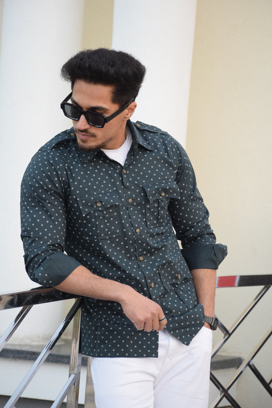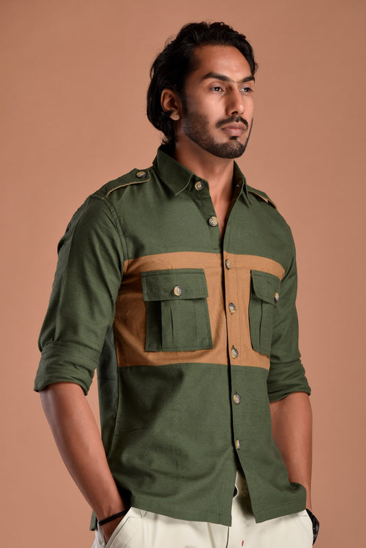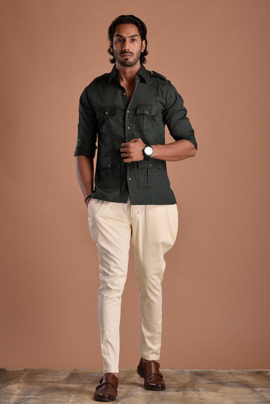 Hunter-Green Cotton Twill Hunting Style Shirt