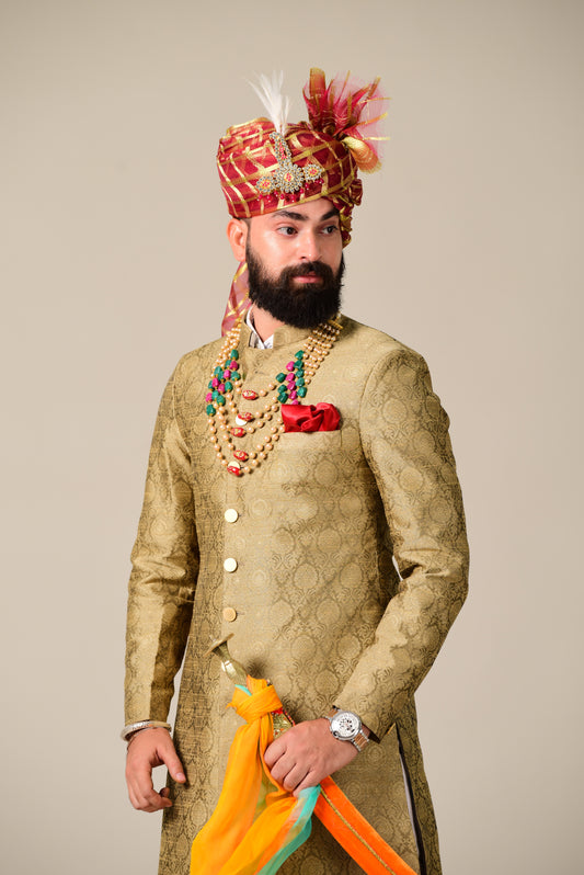 Traditional Pebble Gold Brocade Silk Designer Sherwani
