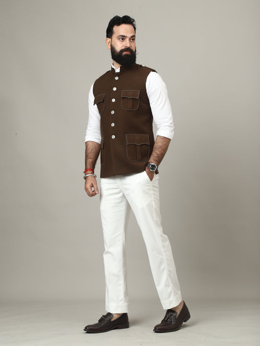 Coffee Brown Royale Semi-Hunting Waistcoat
