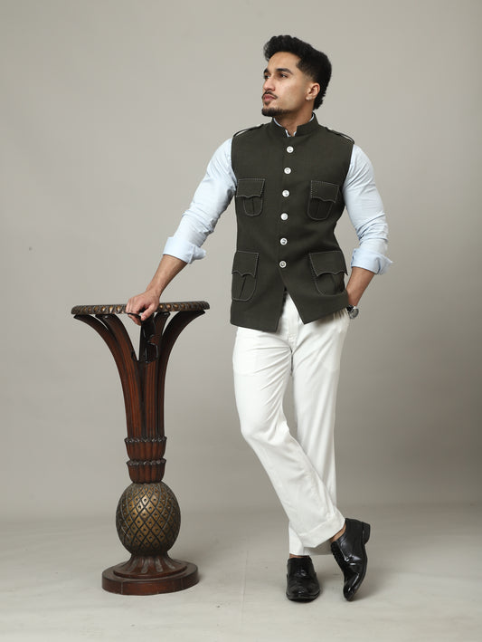 Olive Green Tweed Royale Semi-Hunting Jacket