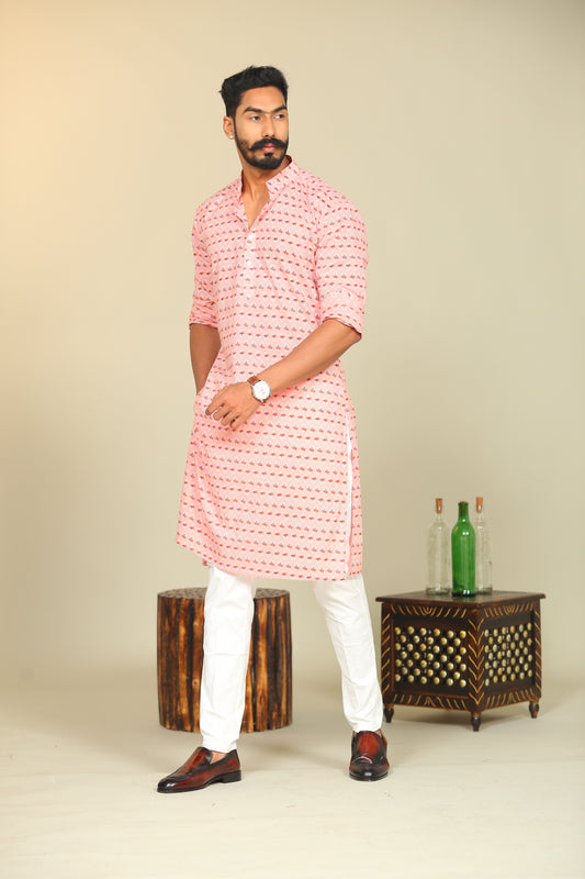 Cotton Sanganeri Booti Printed Pink Kurta Pajama