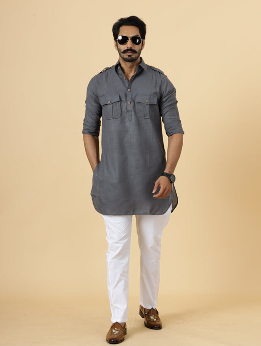 Classy Slate Grey Pathani Kurta-Salwar Set