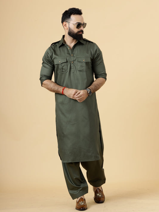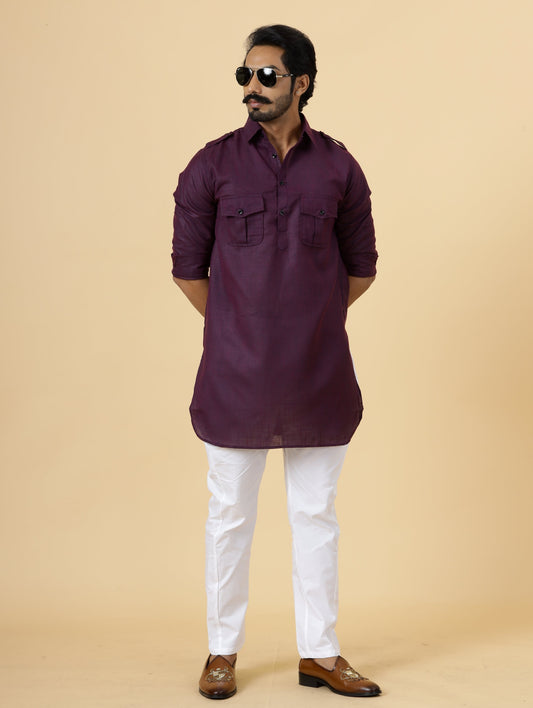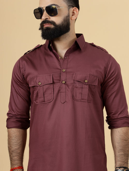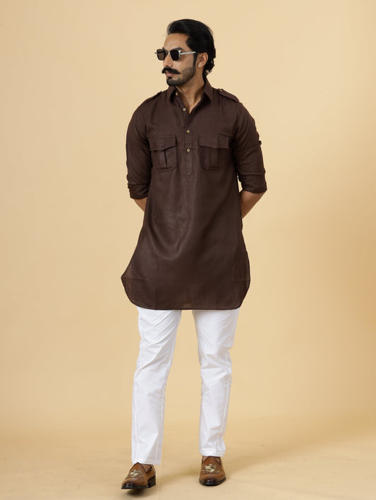 Cocoa Brown Hunting Style Kurta-Pajama Set
