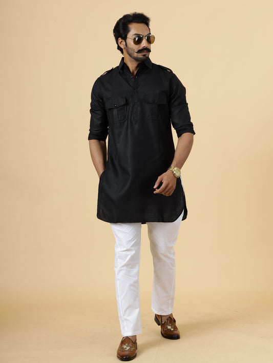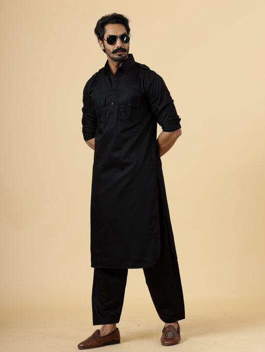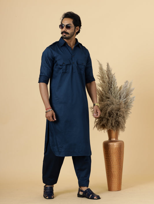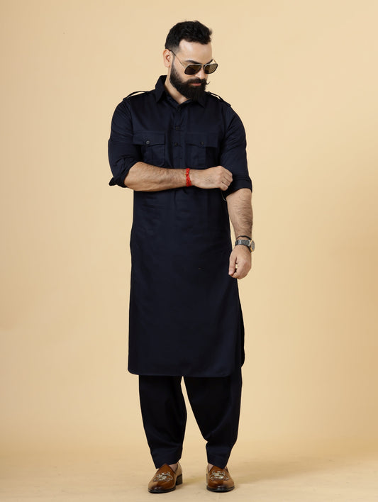 Classy Navy Blue Pathani Kurta-Salwar Set