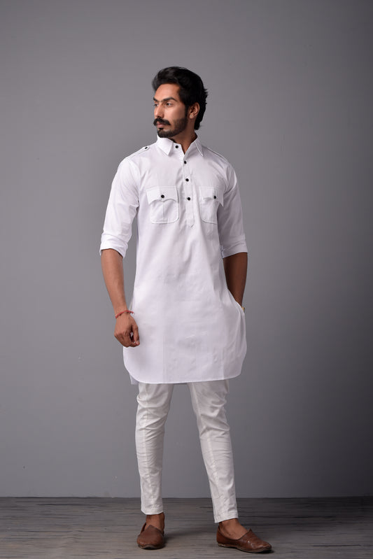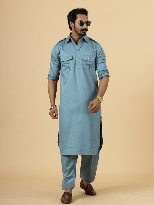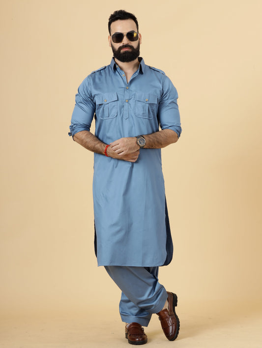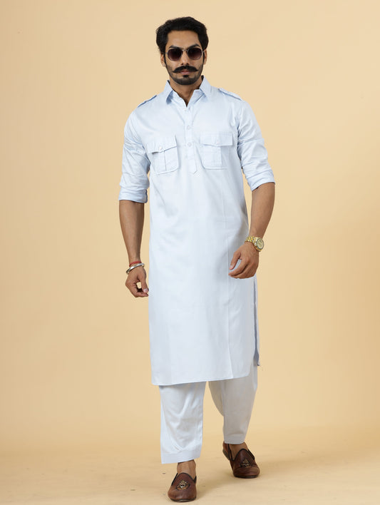 Classy Ice Blue Pathani Kurta-Salwar Set