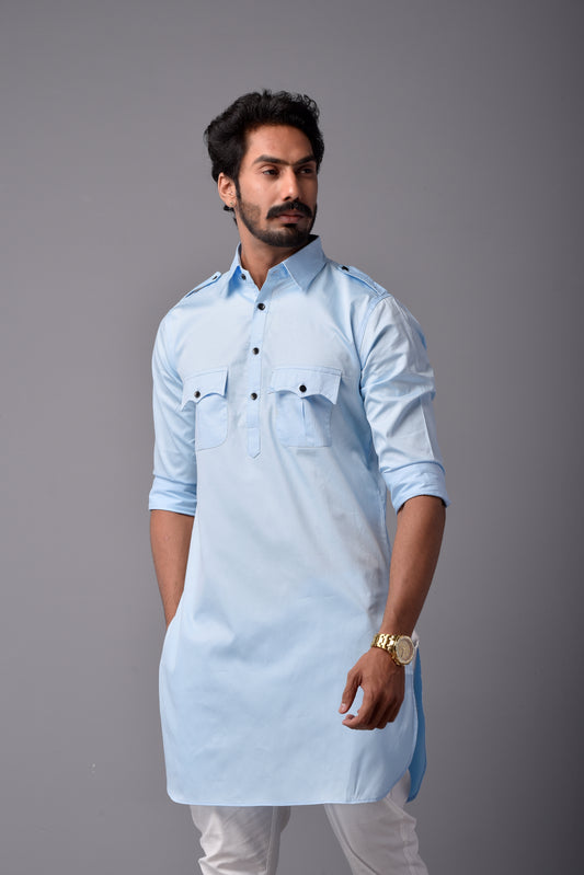 Sky Blue Short Hunting Style Kurta-Pajama set