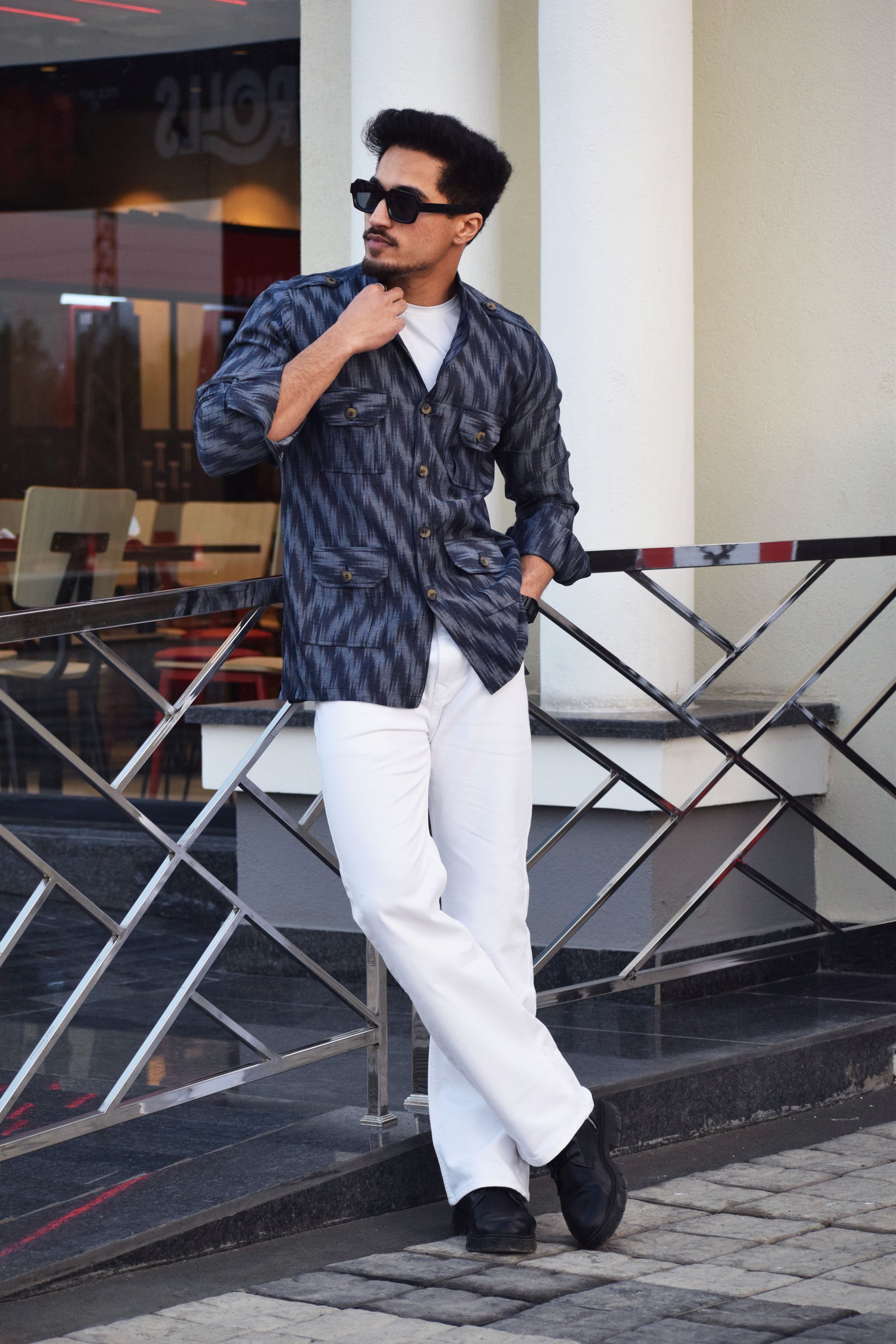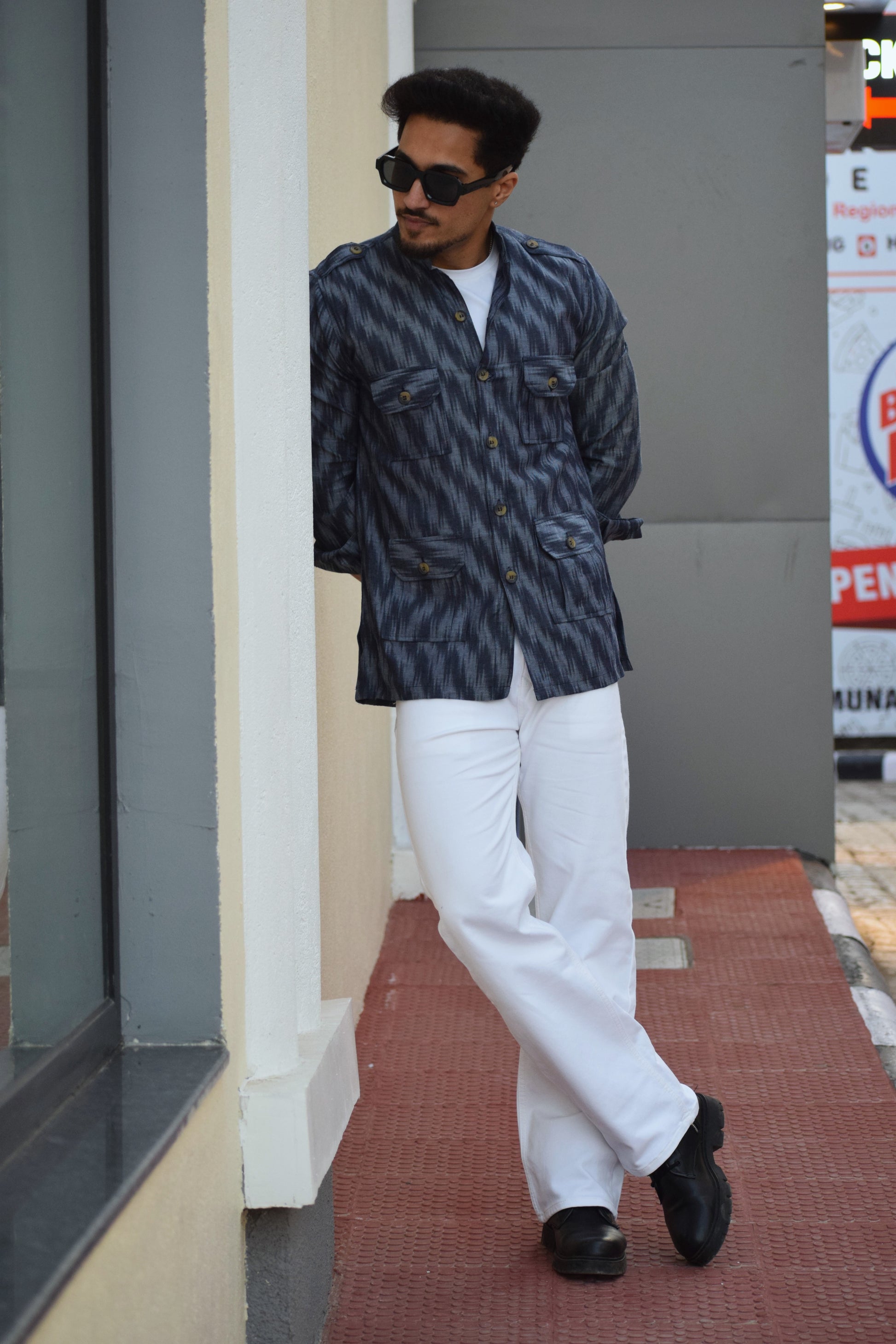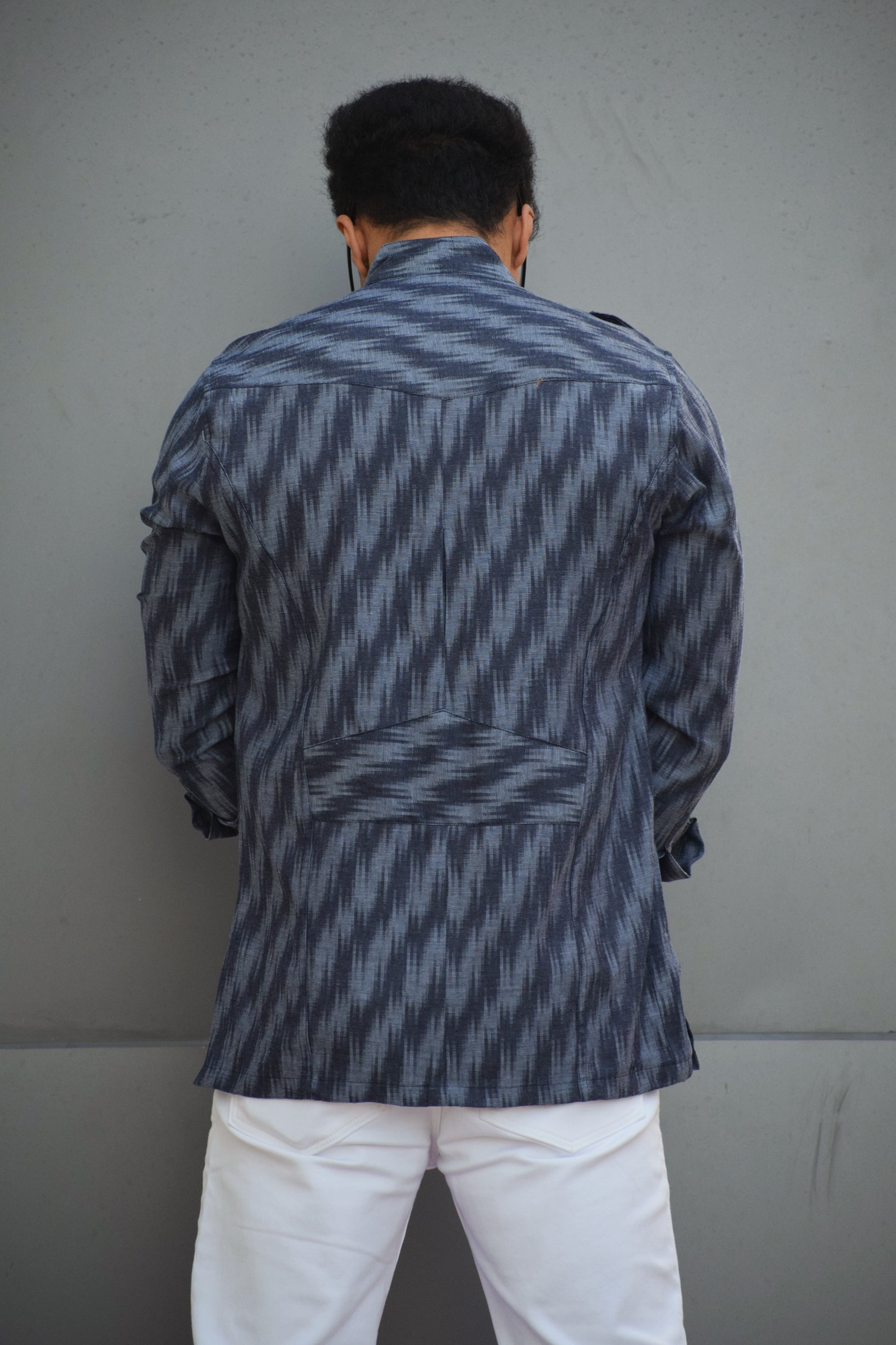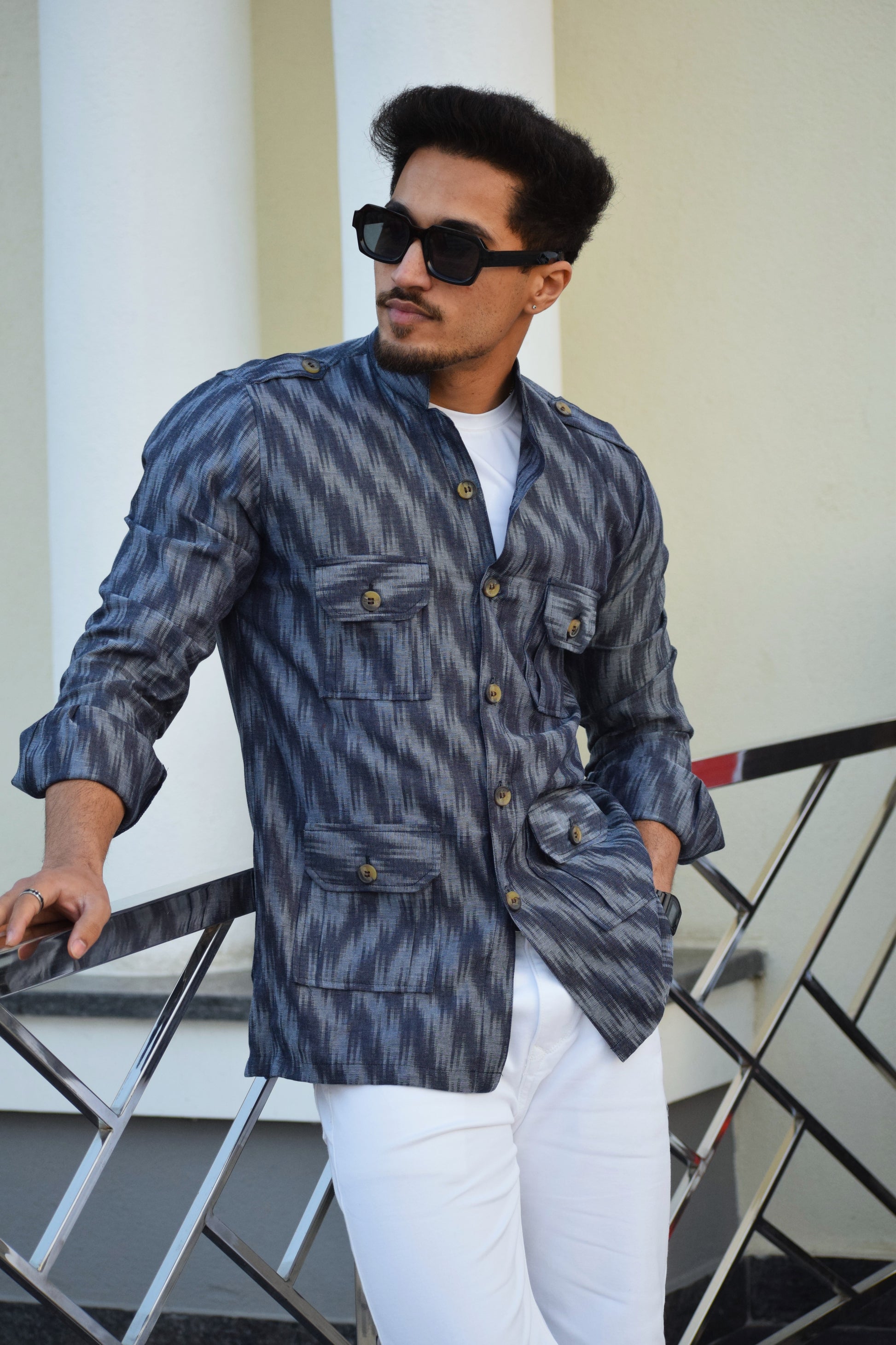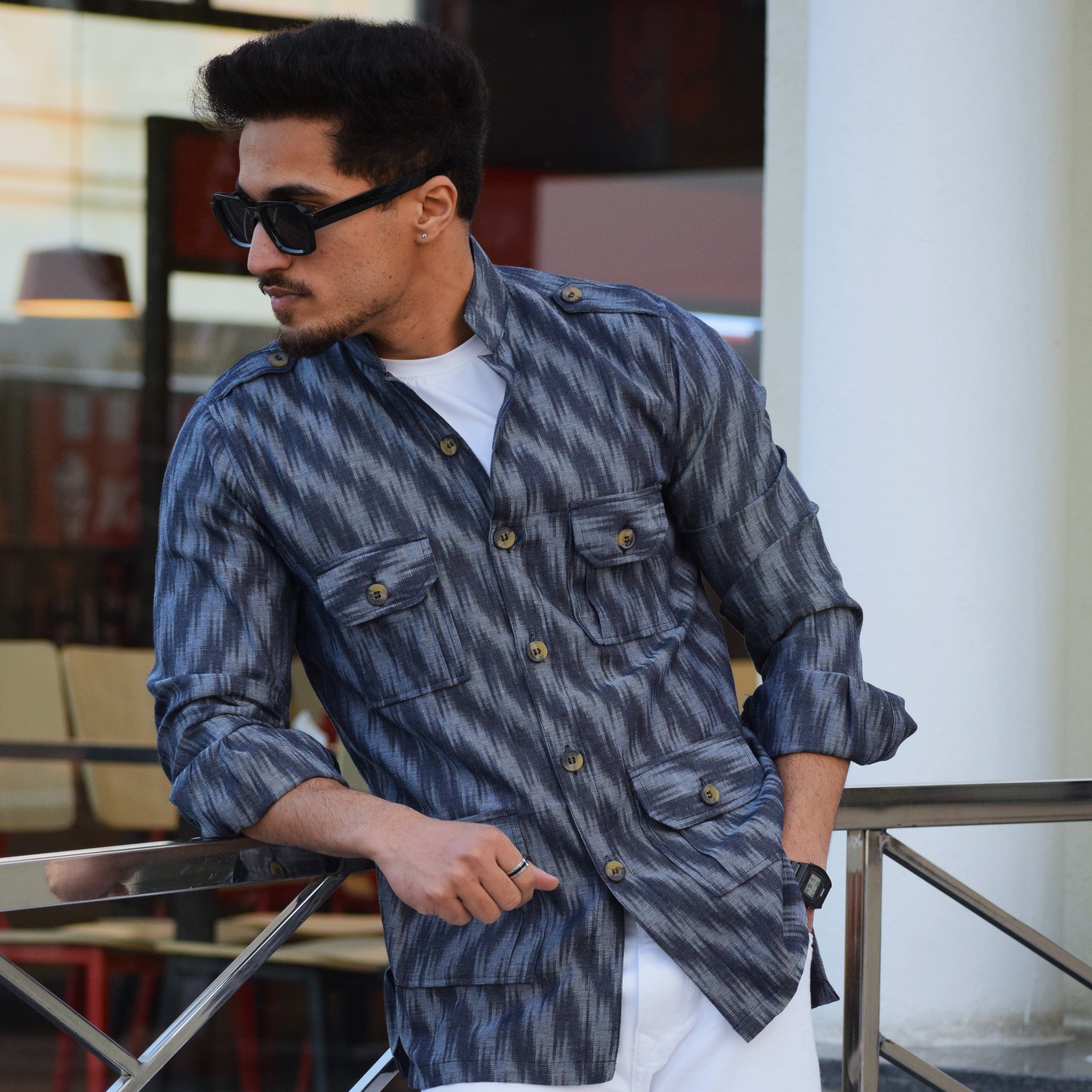 Abstract Print Blue-Grey Vintage Hunting Style Shirt