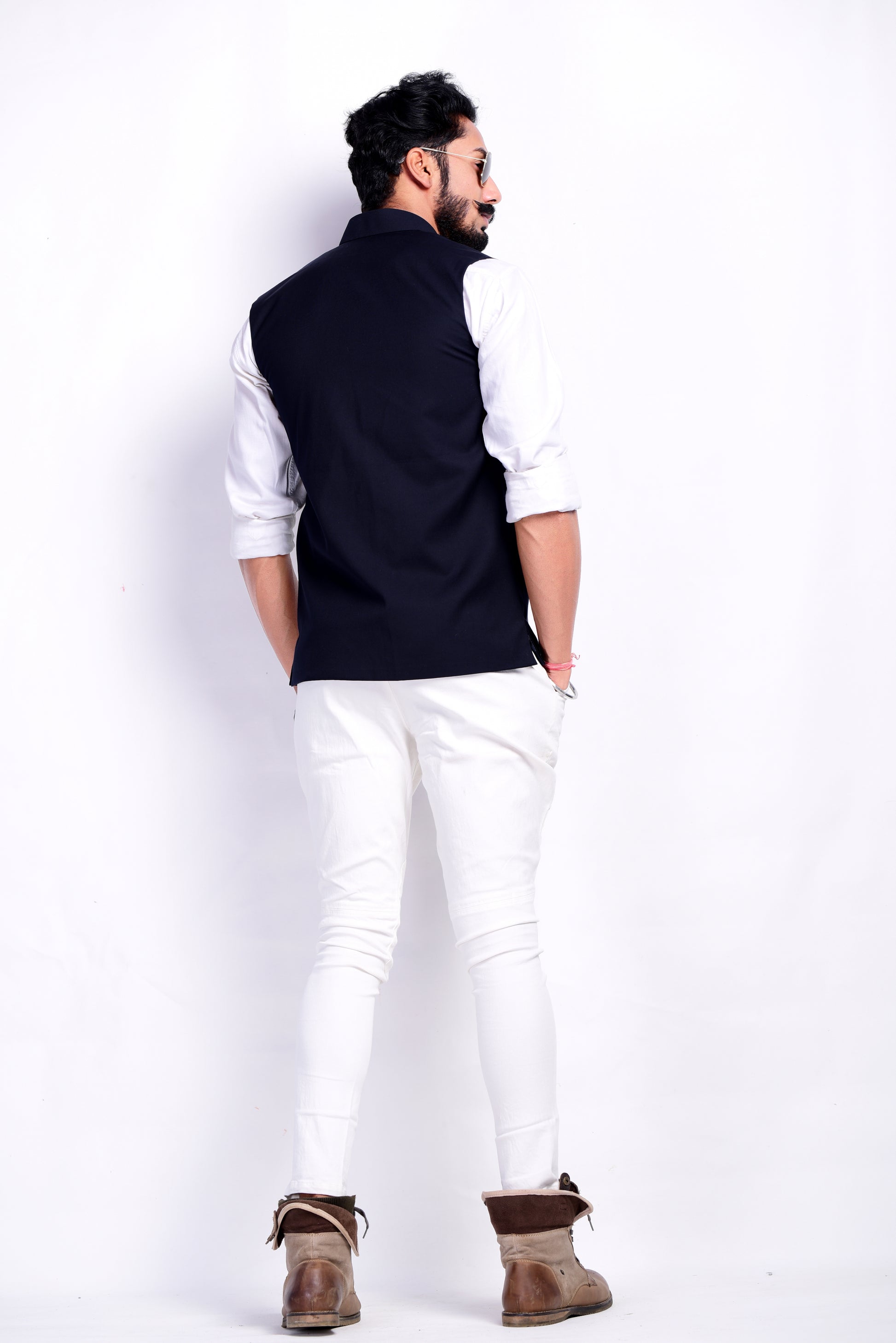 Unleash the true fashion icon in you with the Half Jodhpuri Jacket from Rajanyas. The royal armour to any traditional attire, Half Jodhpuri Jackets enhance the look for all occasions!