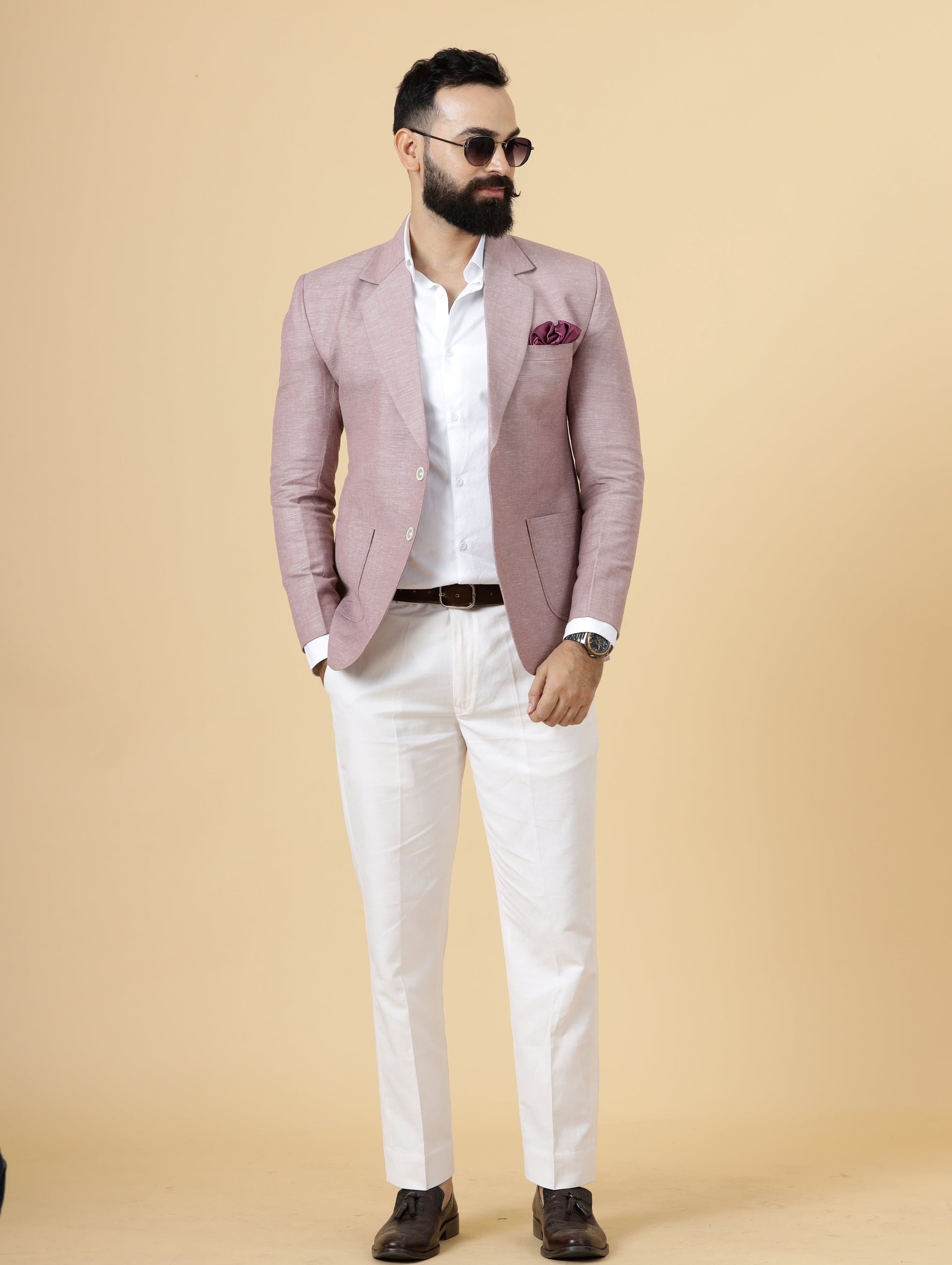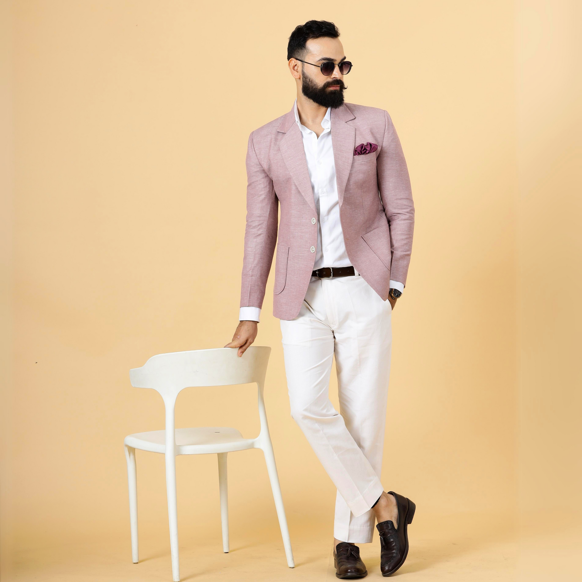 Classy Rosewood Linen 2-Piece Suit for Men | White Trouser |