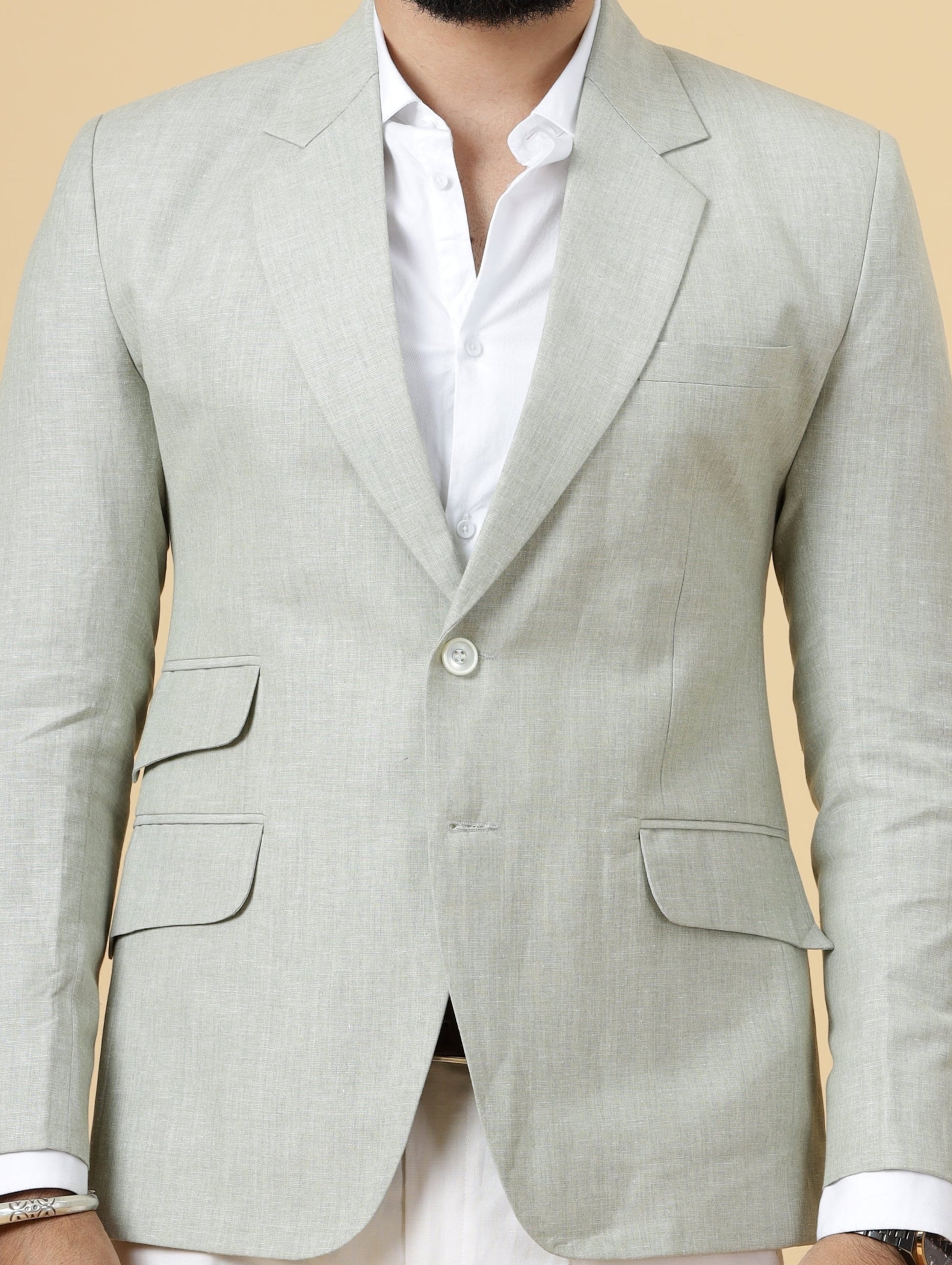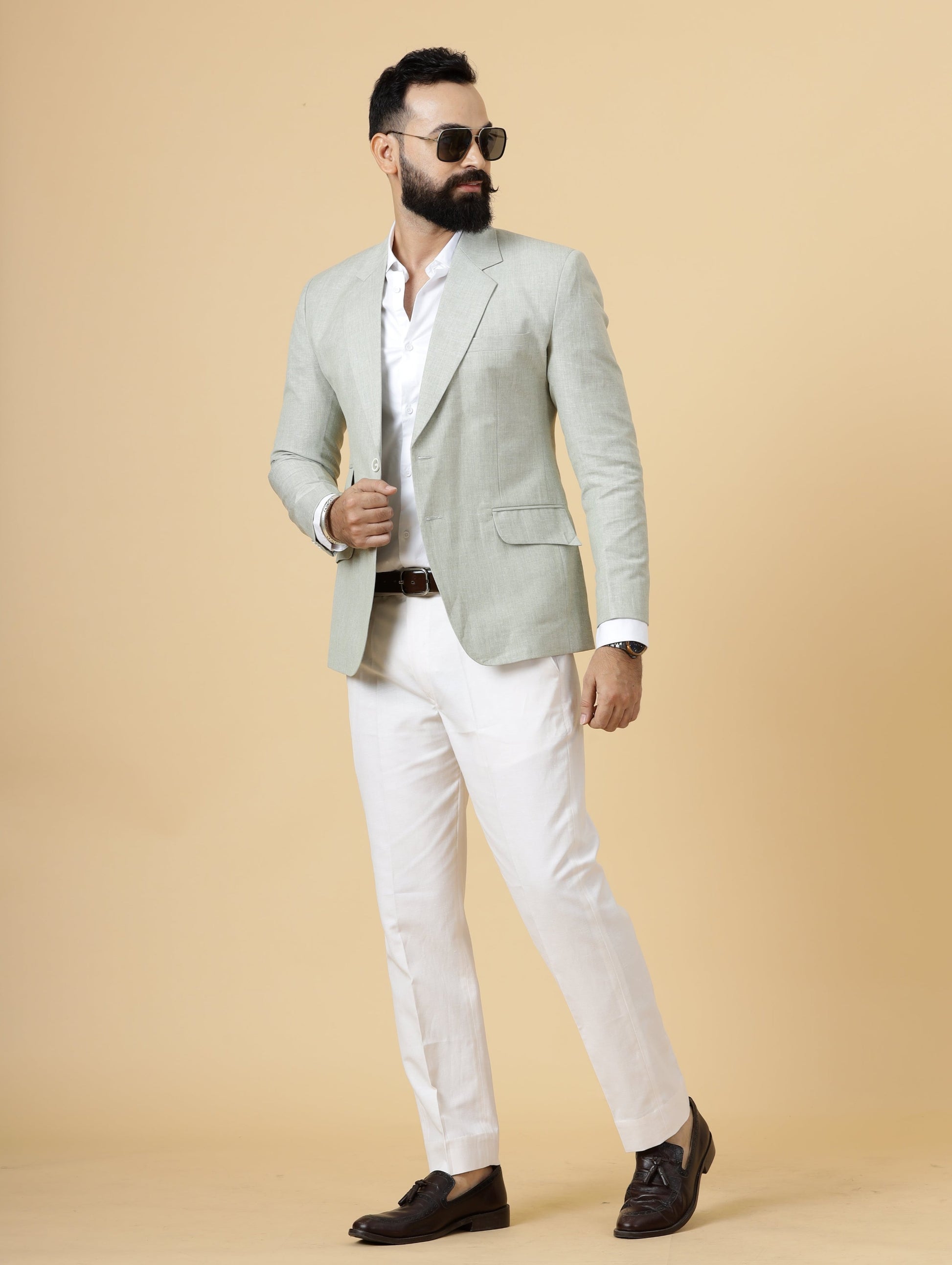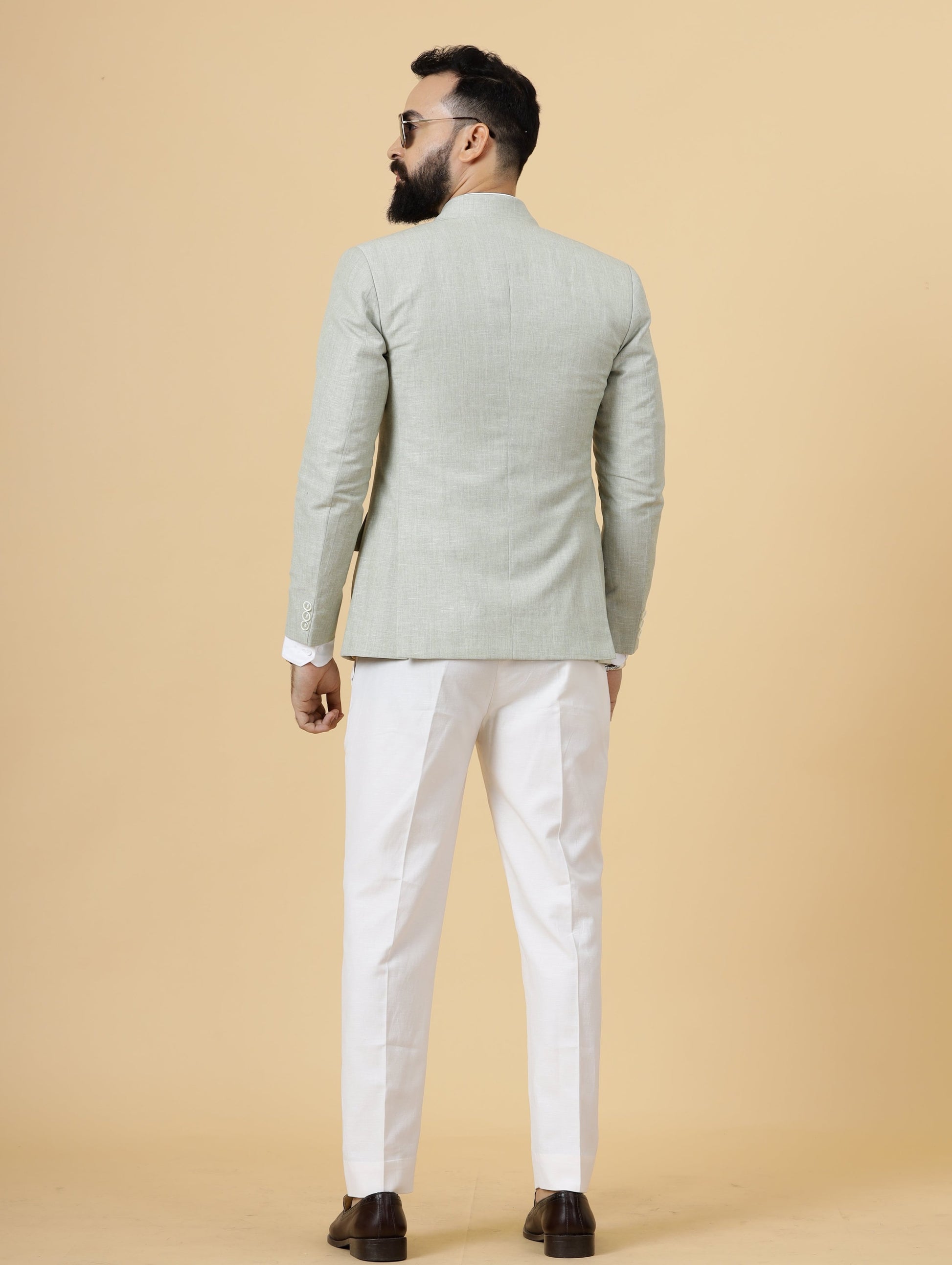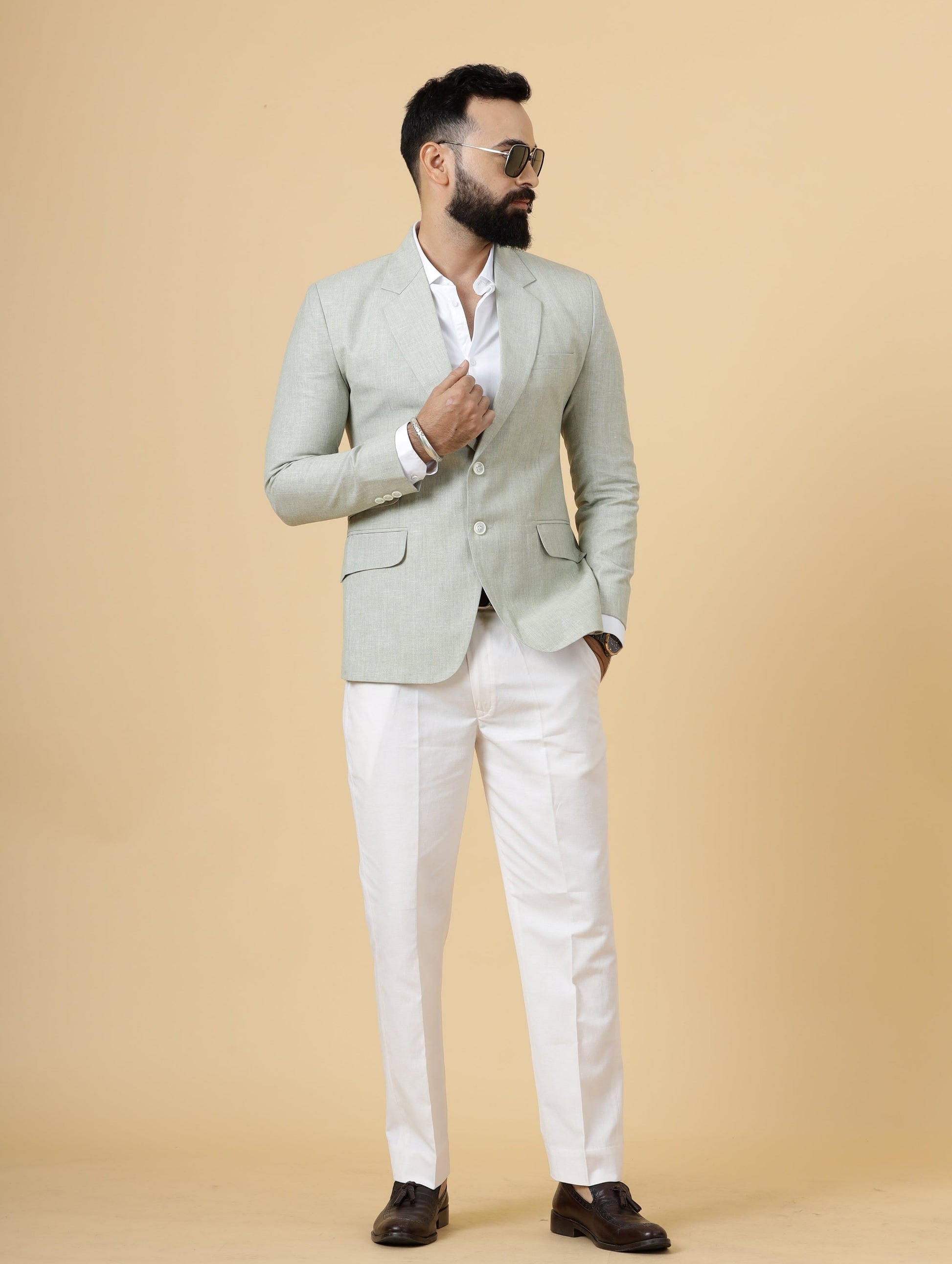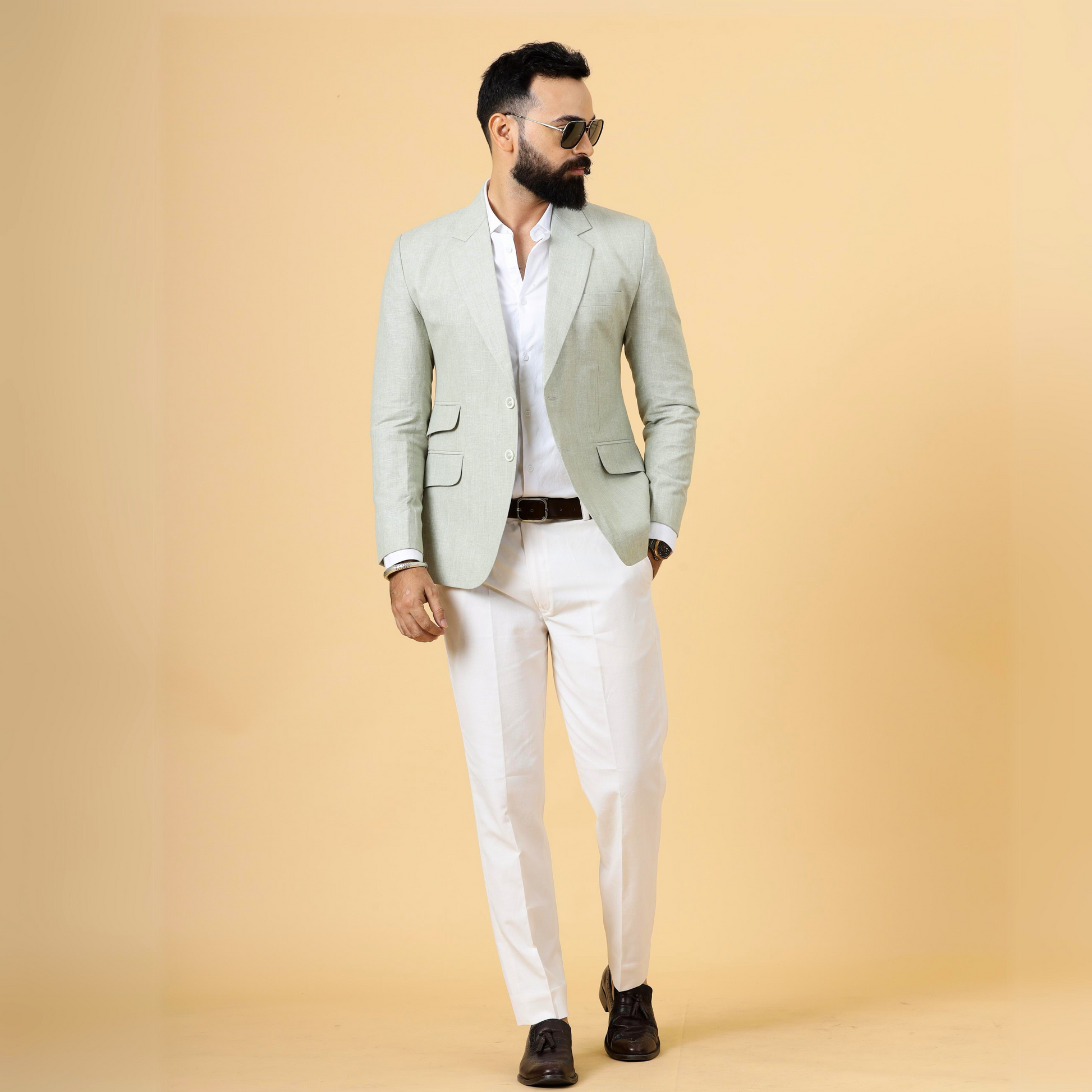 Classy Tea Green Linen 2-Piece Suit for Men | White Trouser |
