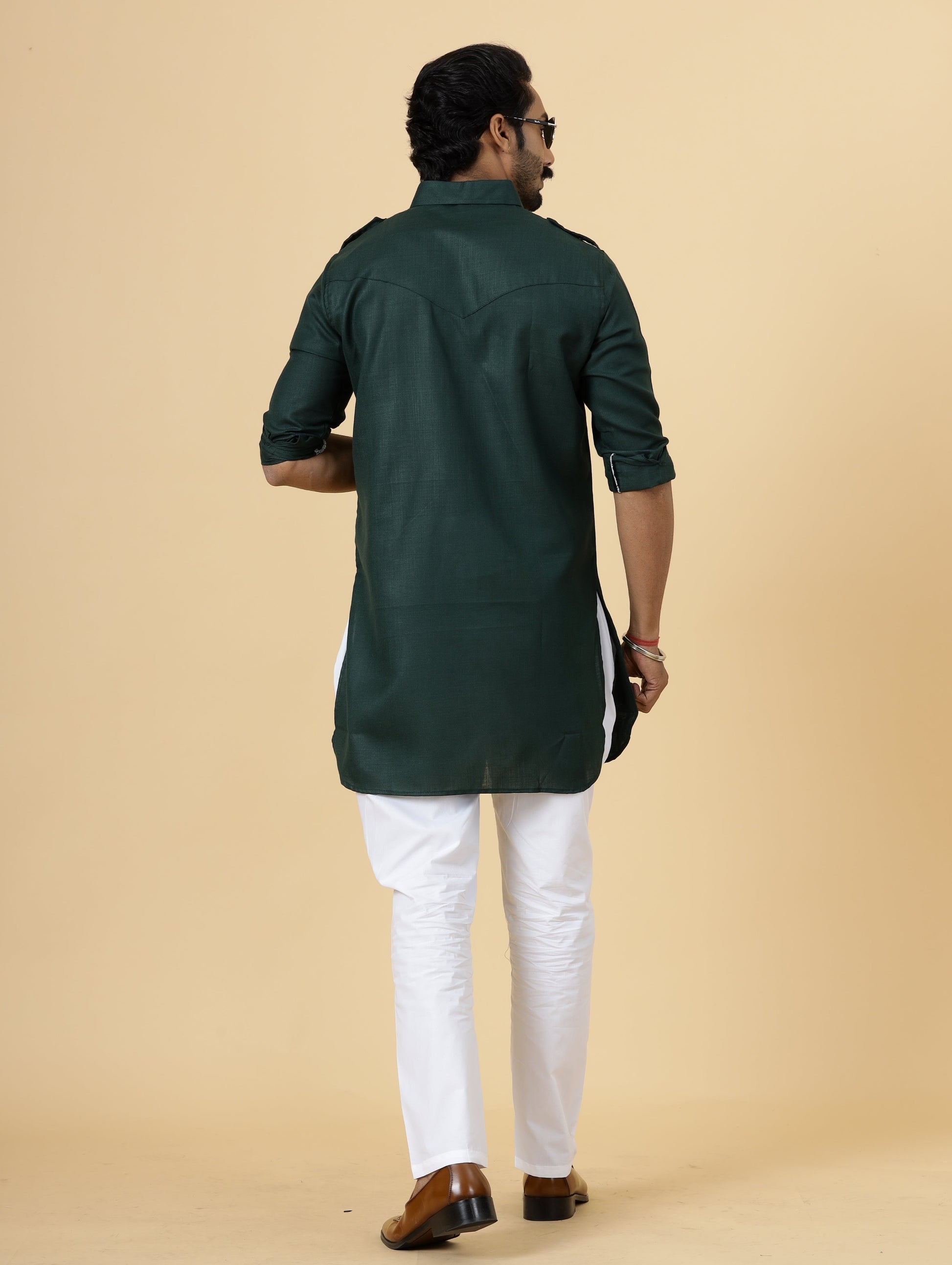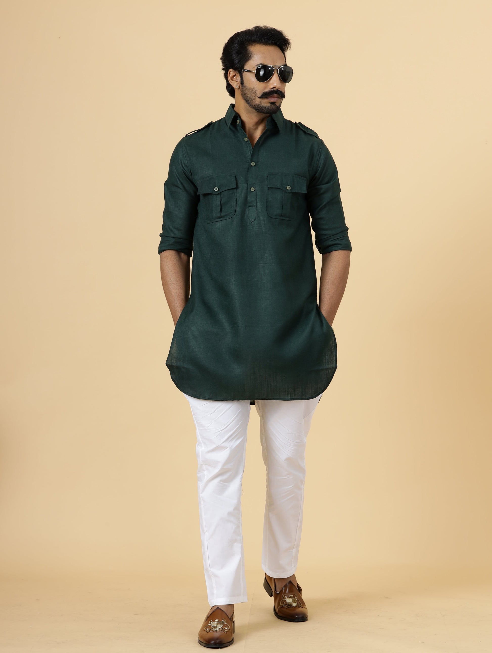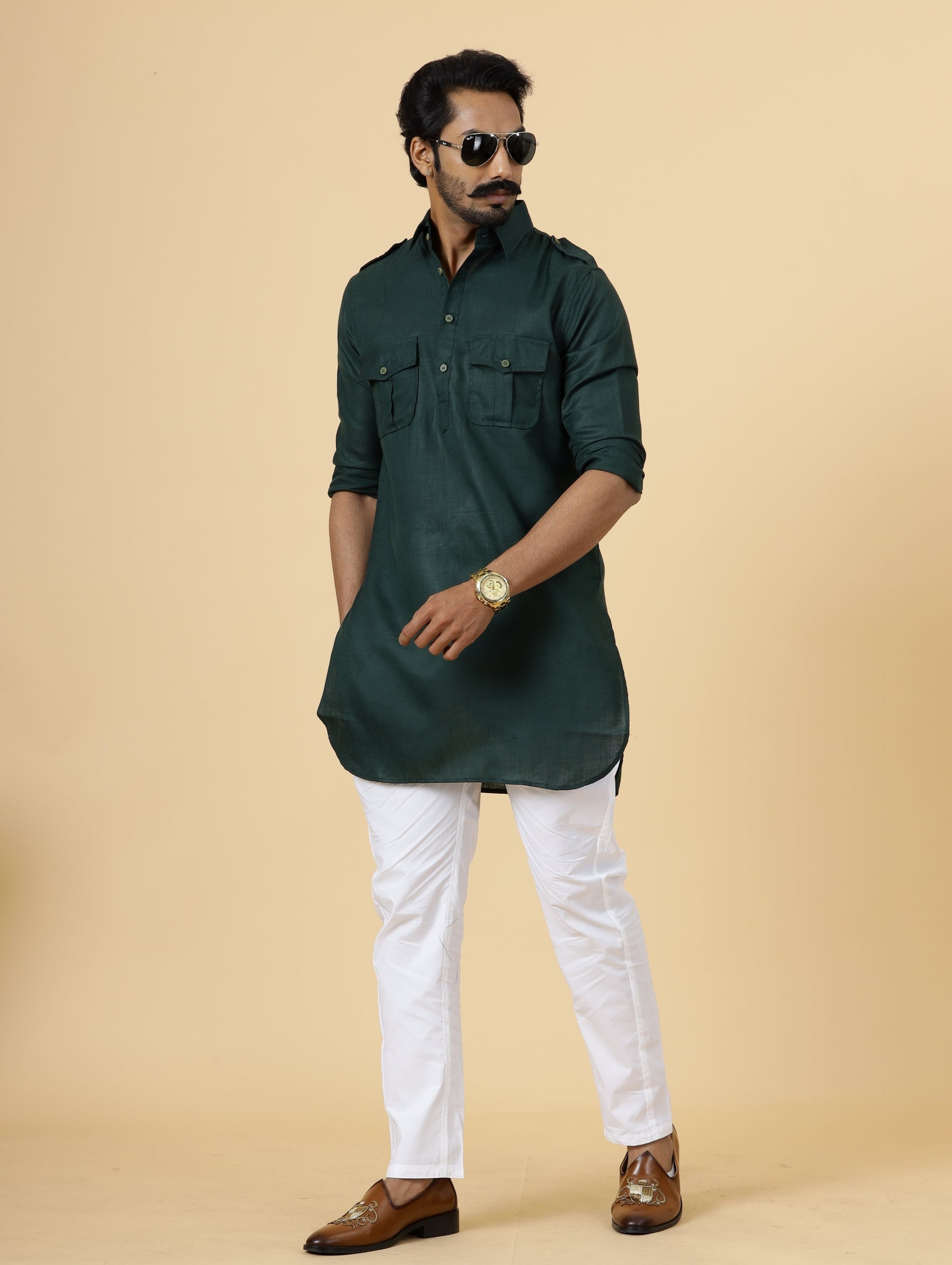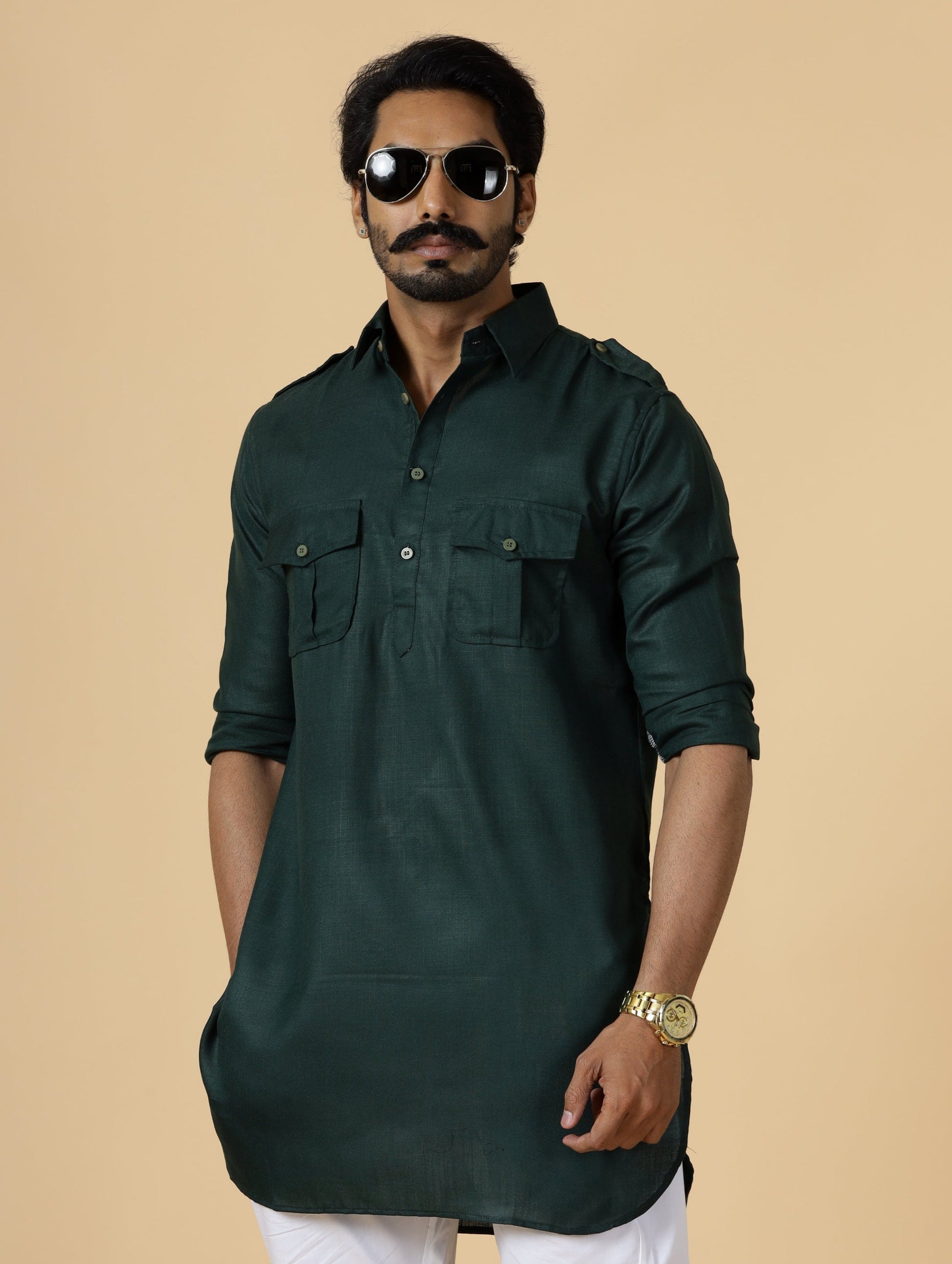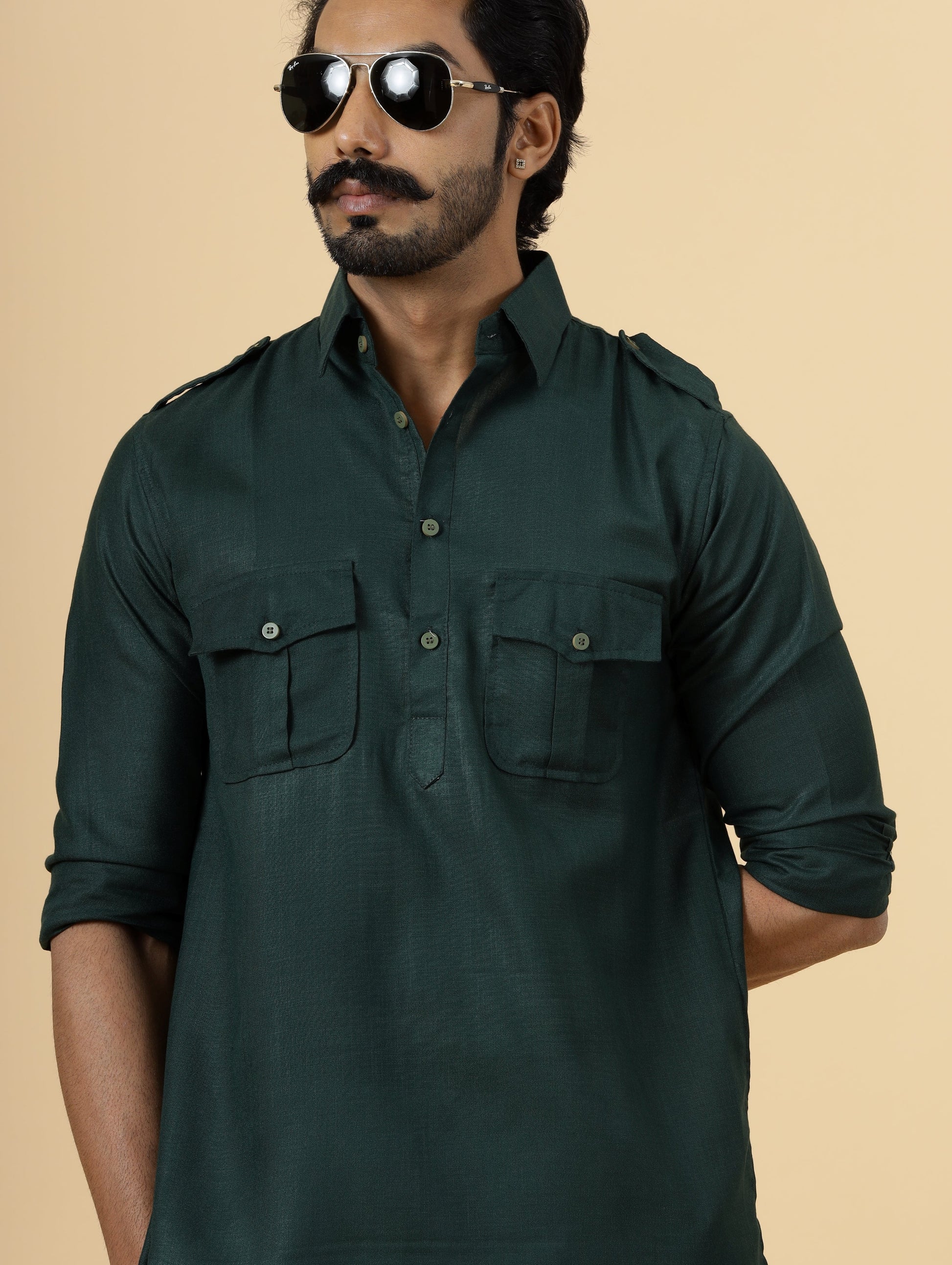 Our hunting-style Kurta is a perfect blend of past and present trends, featuring 2 flap pockets on the chest and shoulder flaps for a strong, alpha look.