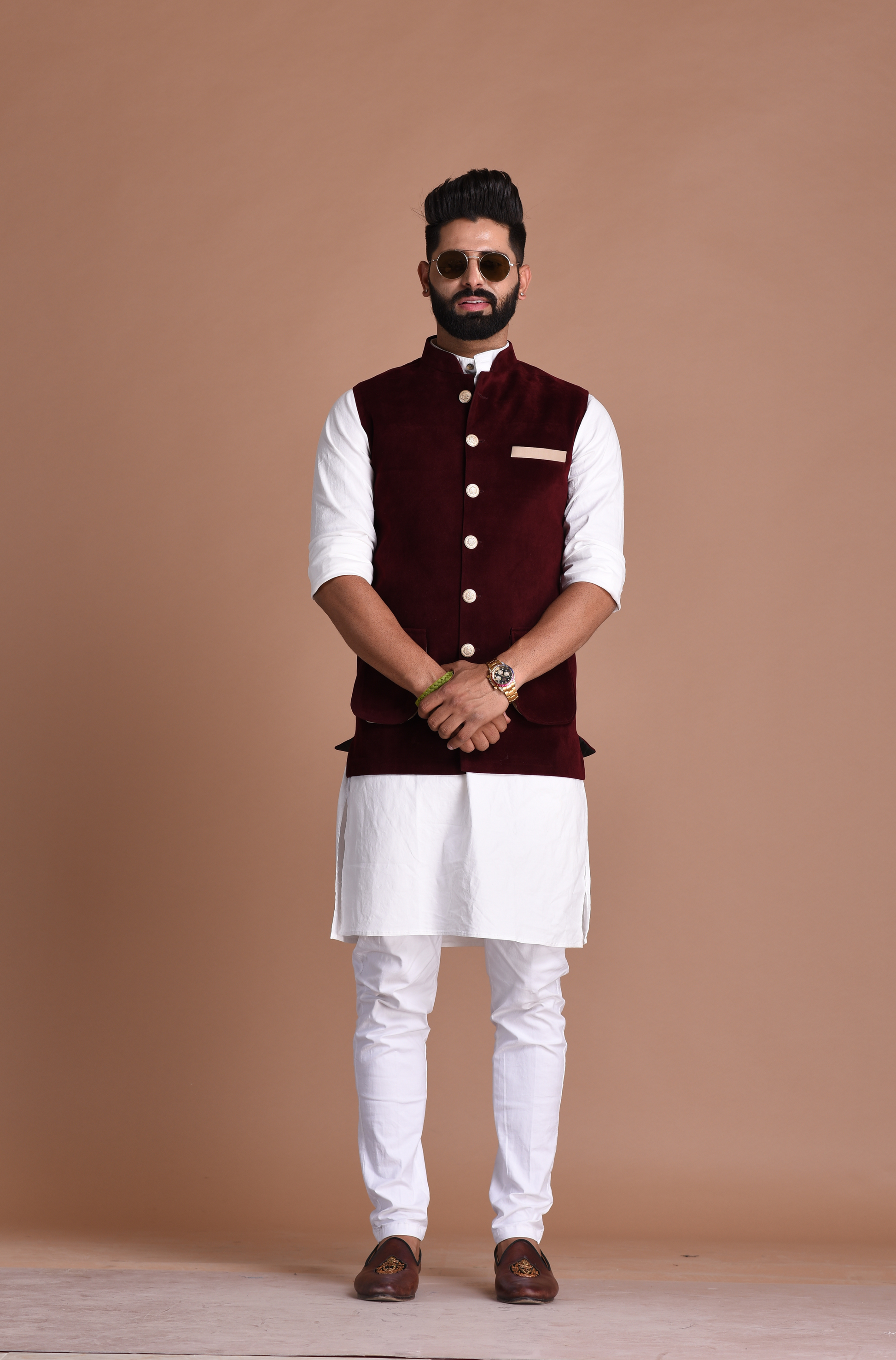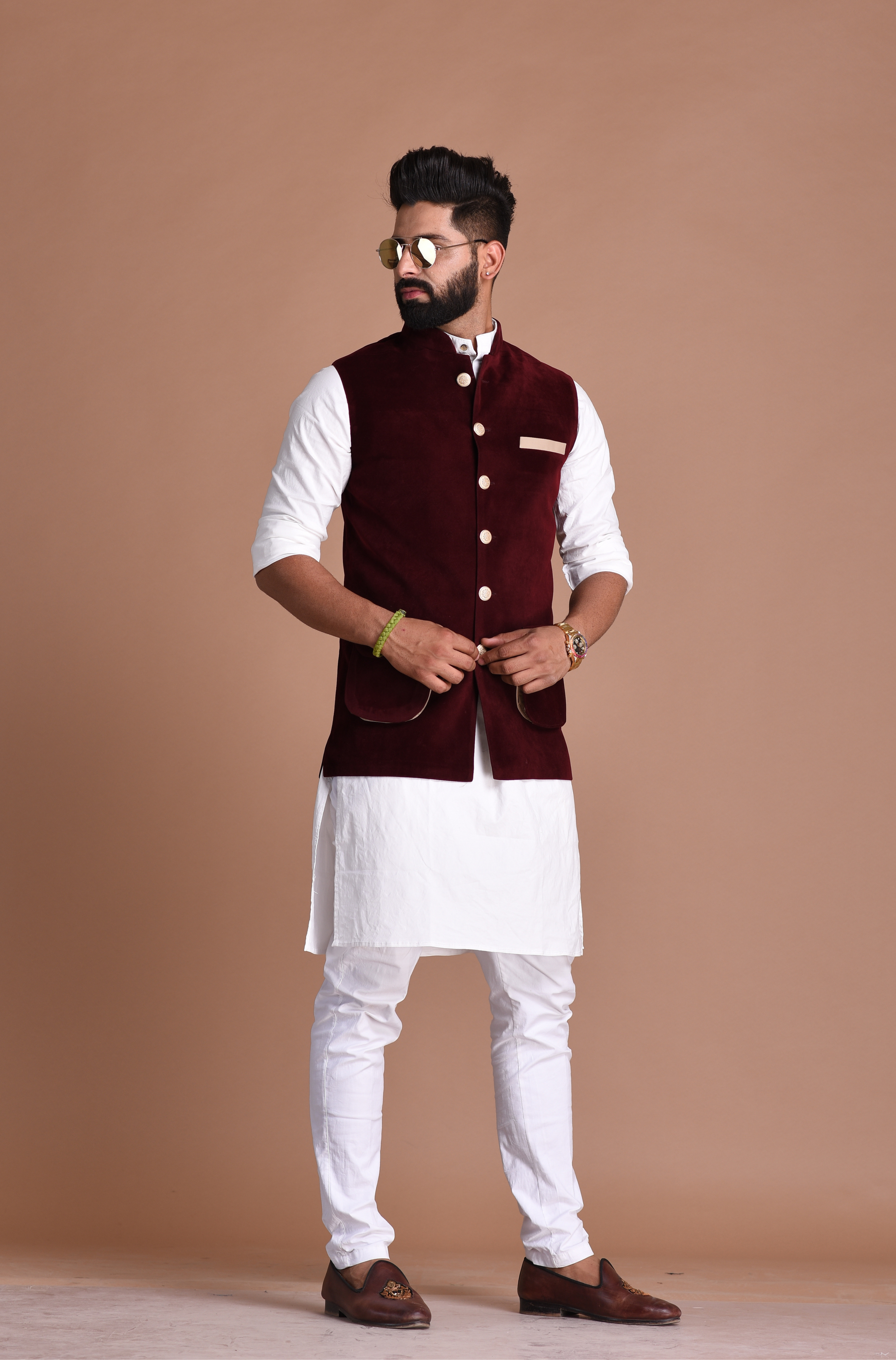 • Color: Maroon Half Jacket, White Kurta, White Pajama