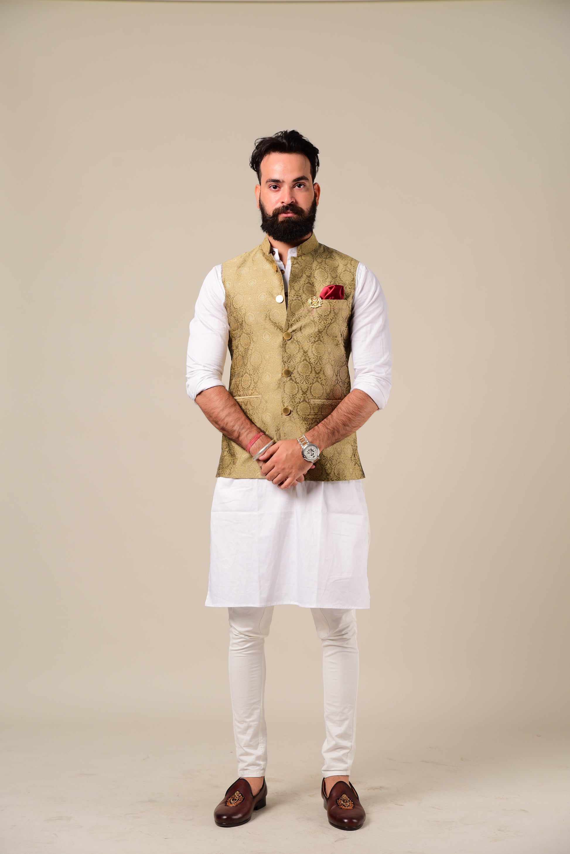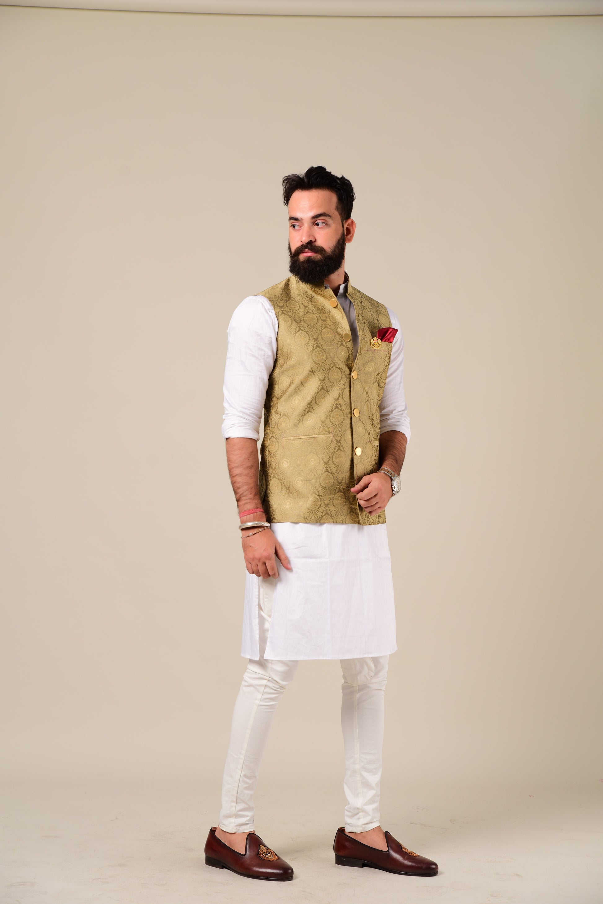 • Color: Golden Half Jacket, White Kurta, White Pajama