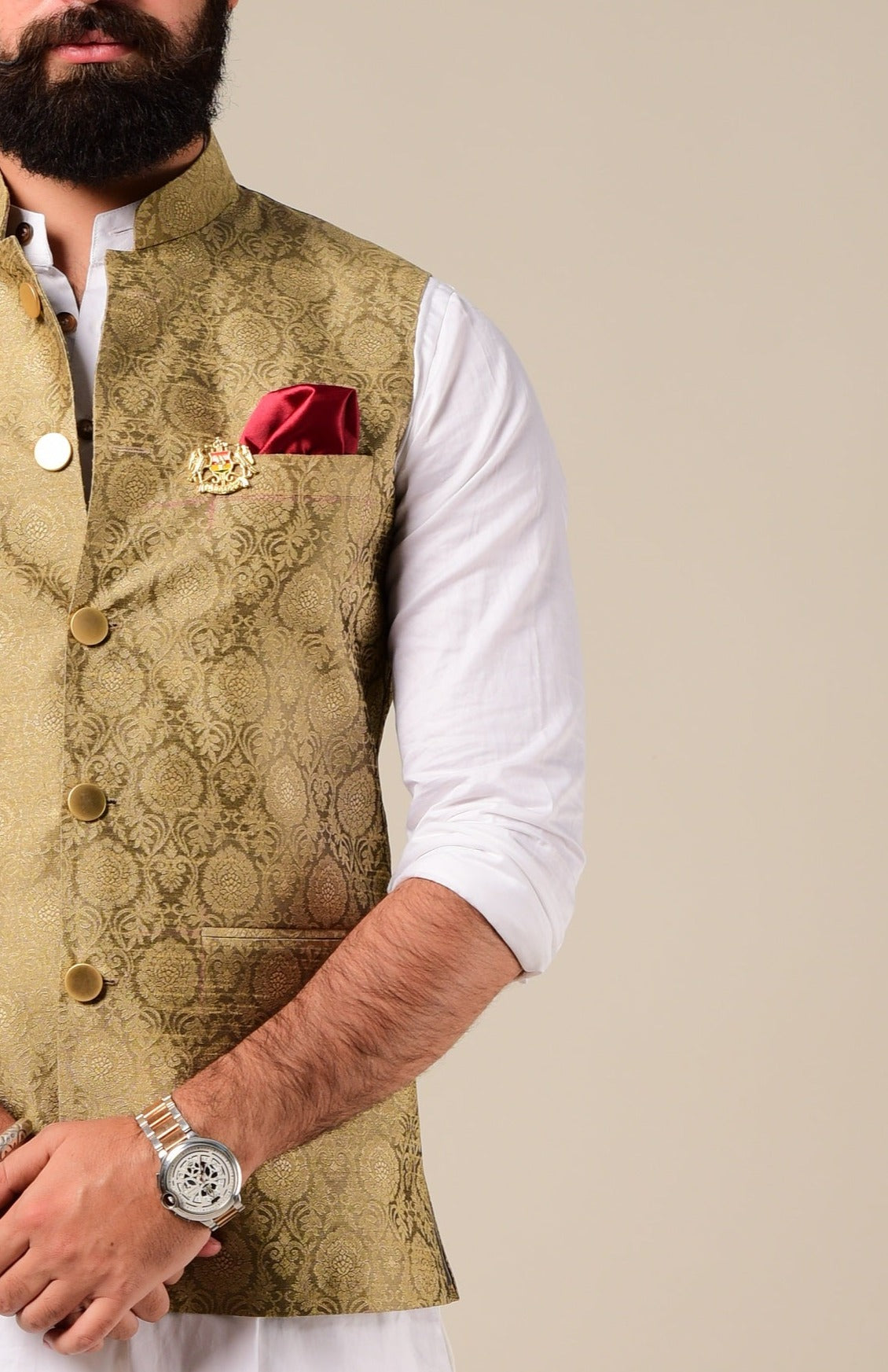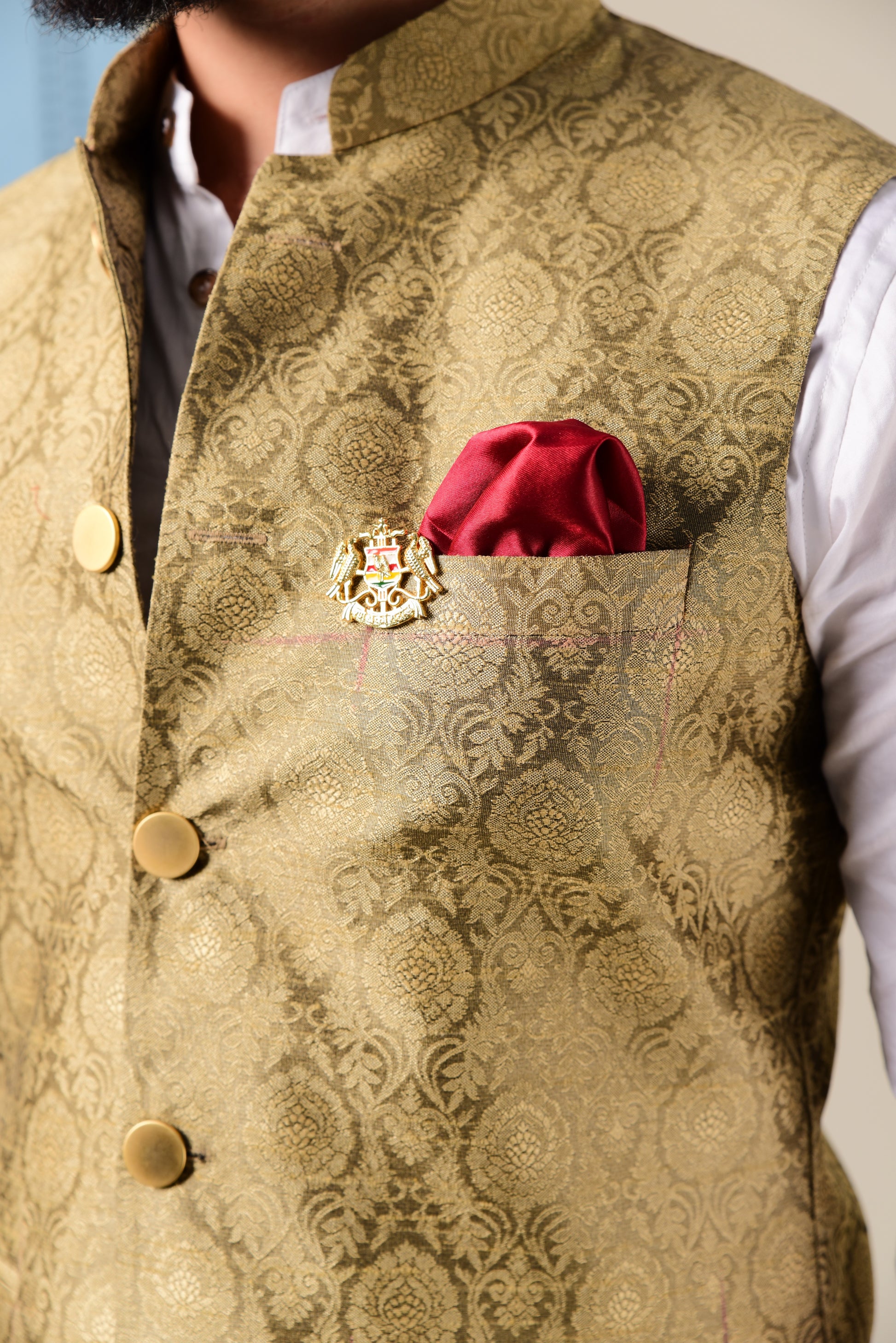 Handmade Royal Gold Kurta Pajama Nehru Modi Jacket Set