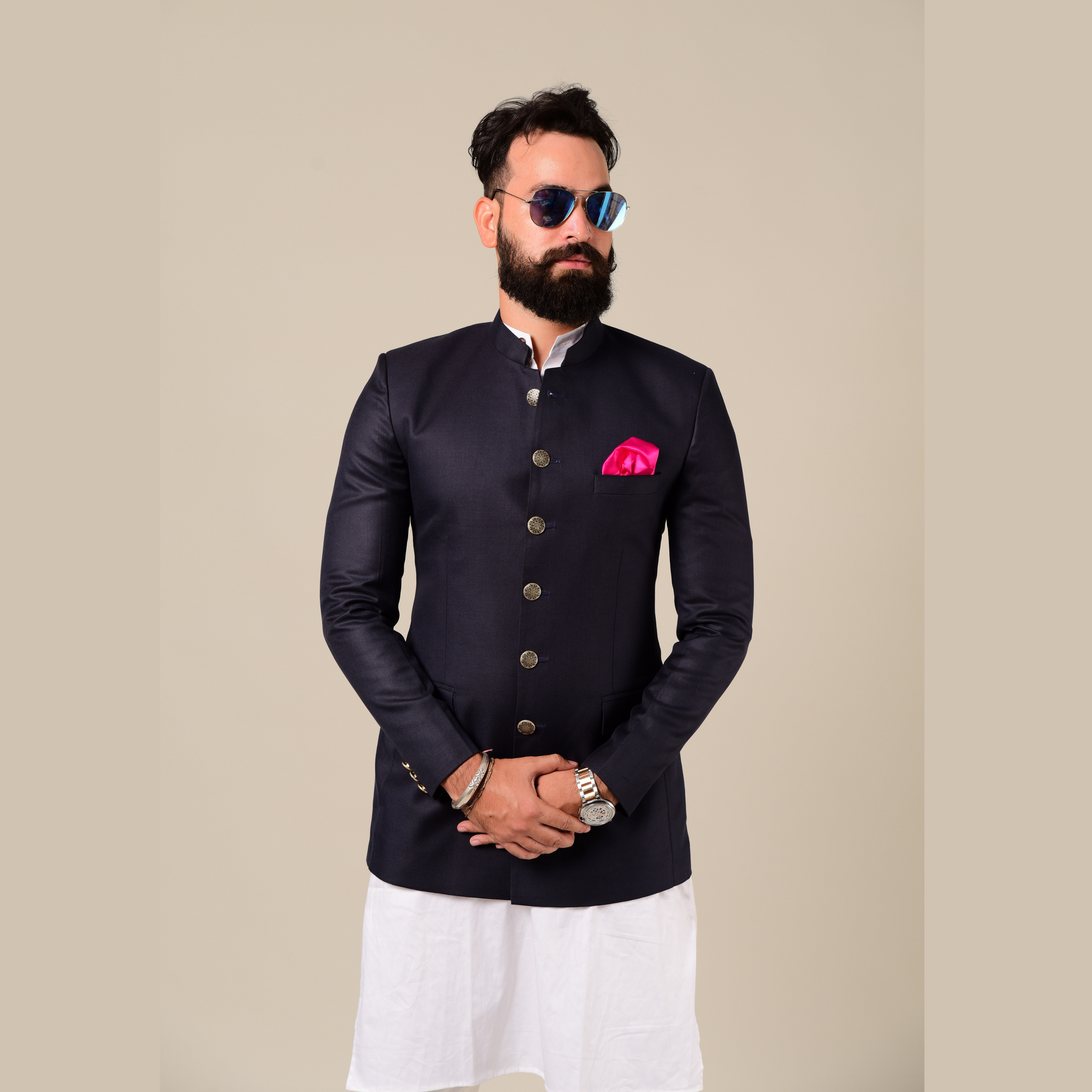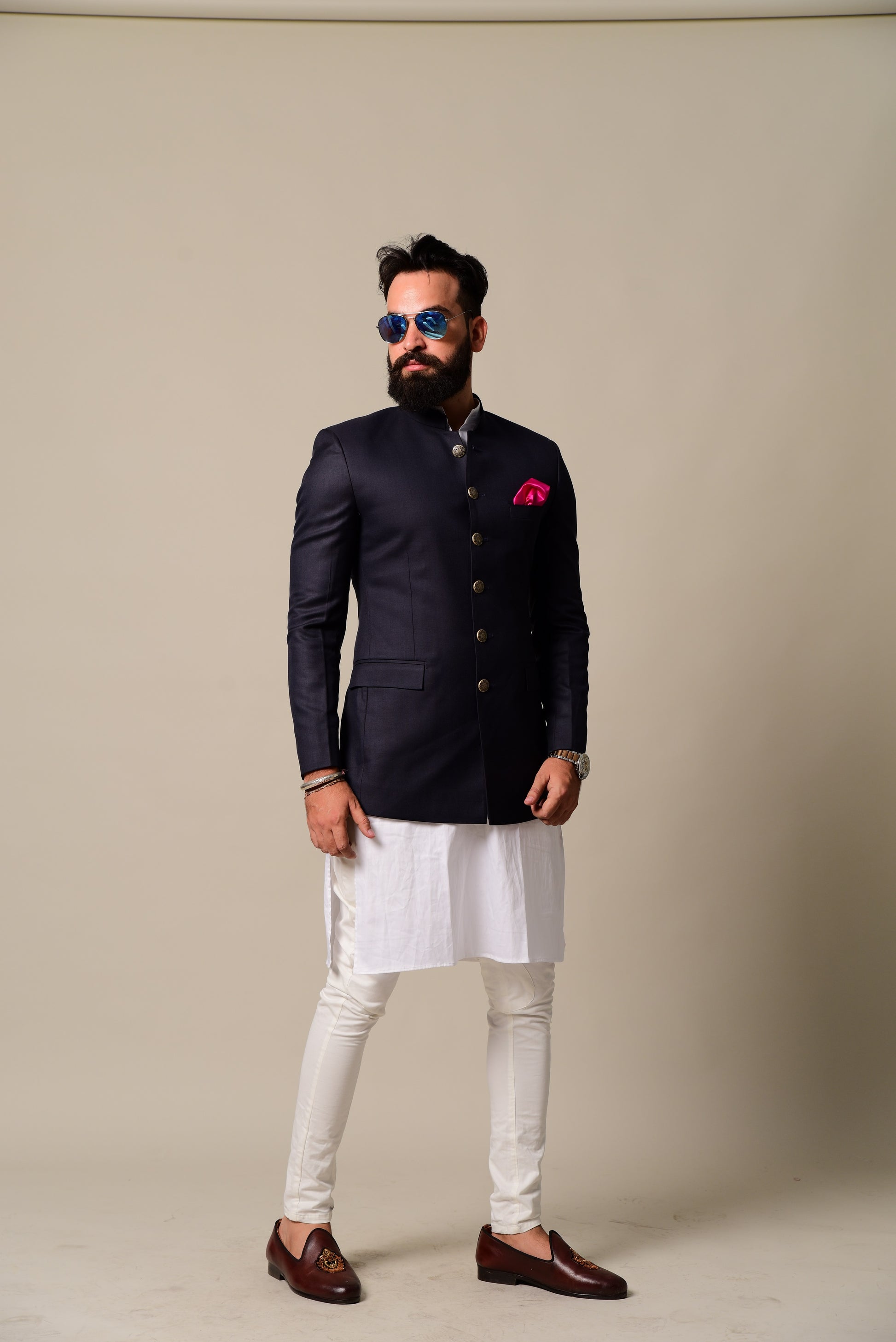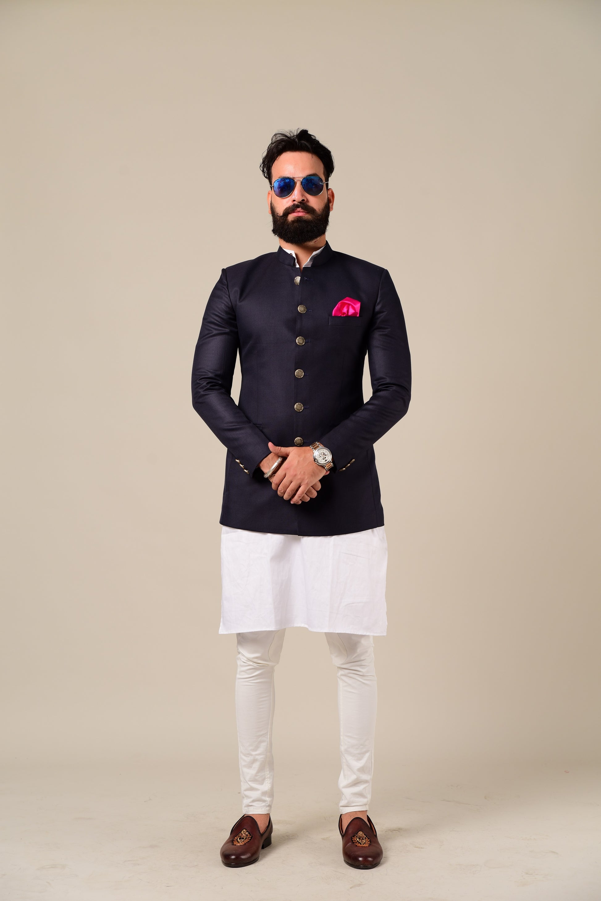• Color: Navy Blue Bandhgala ,White Kurta, White Pajama