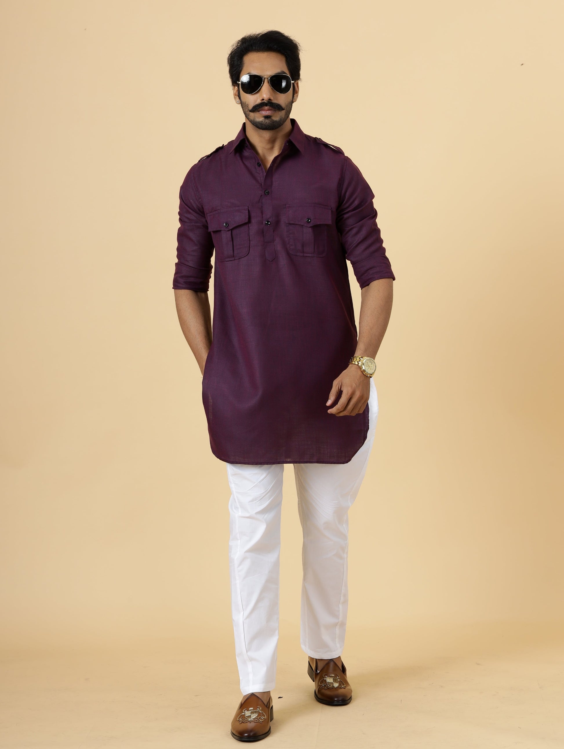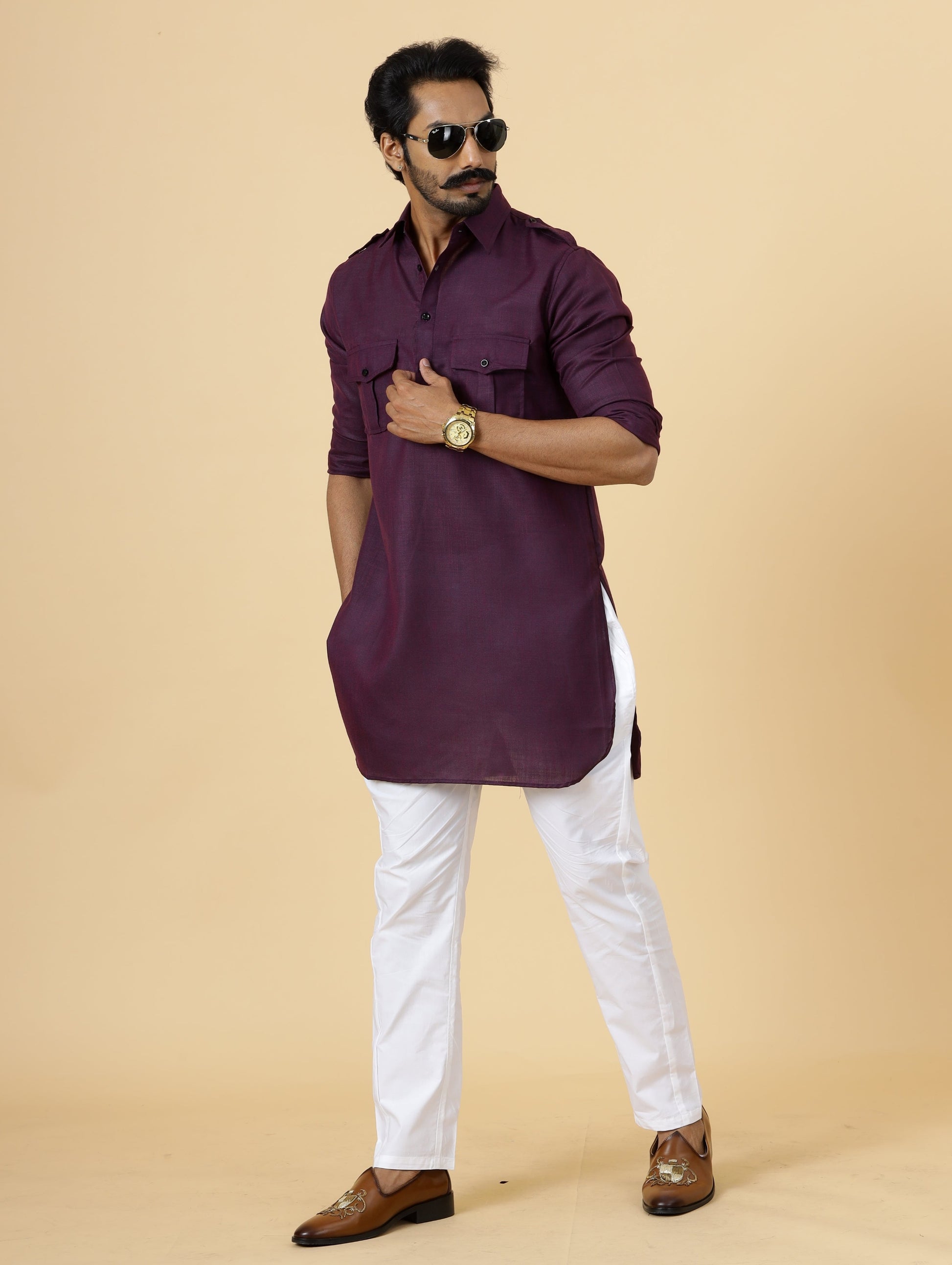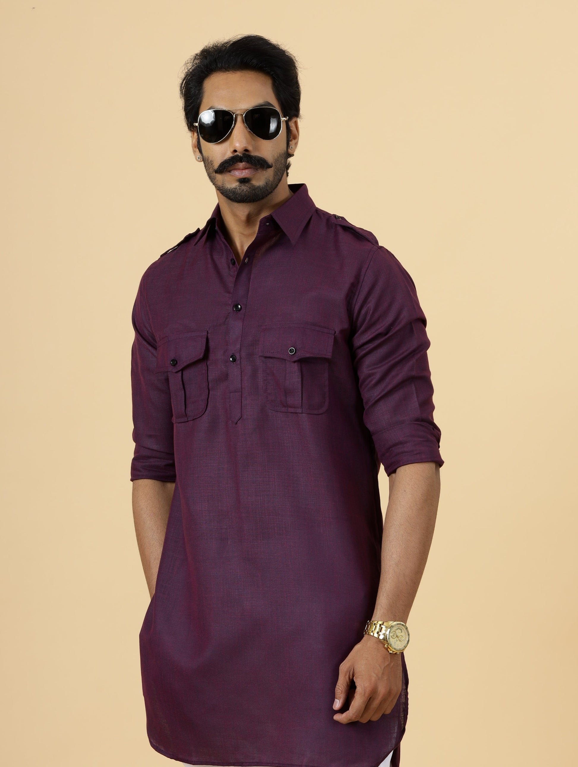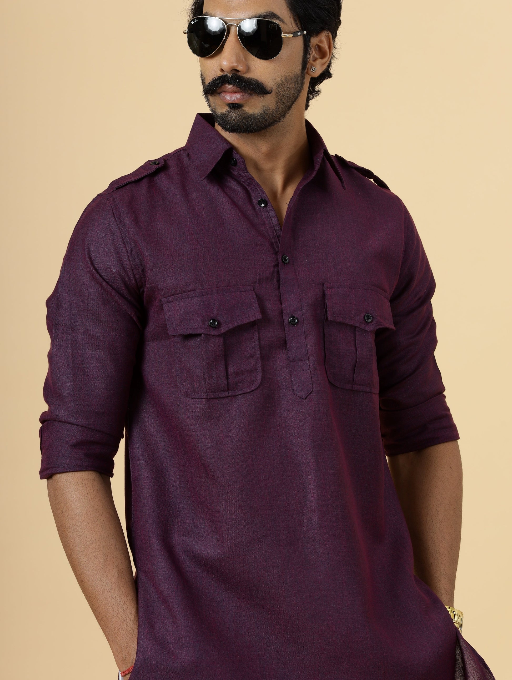 Our hunting-style Kurta is a perfect blend of past and present trends, featuring 2 flap pockets on the chest and shoulder flaps for a strong, alpha look.