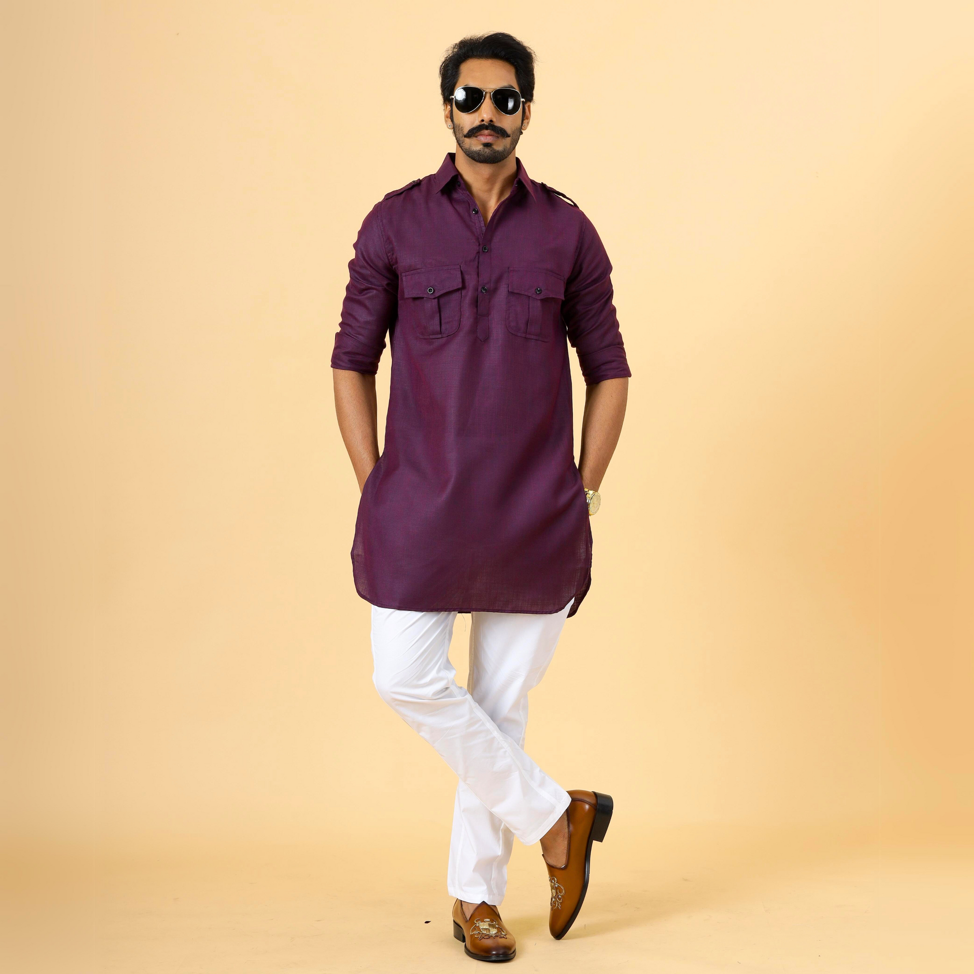 Purple Hunting Style Kurta-Pajama Set