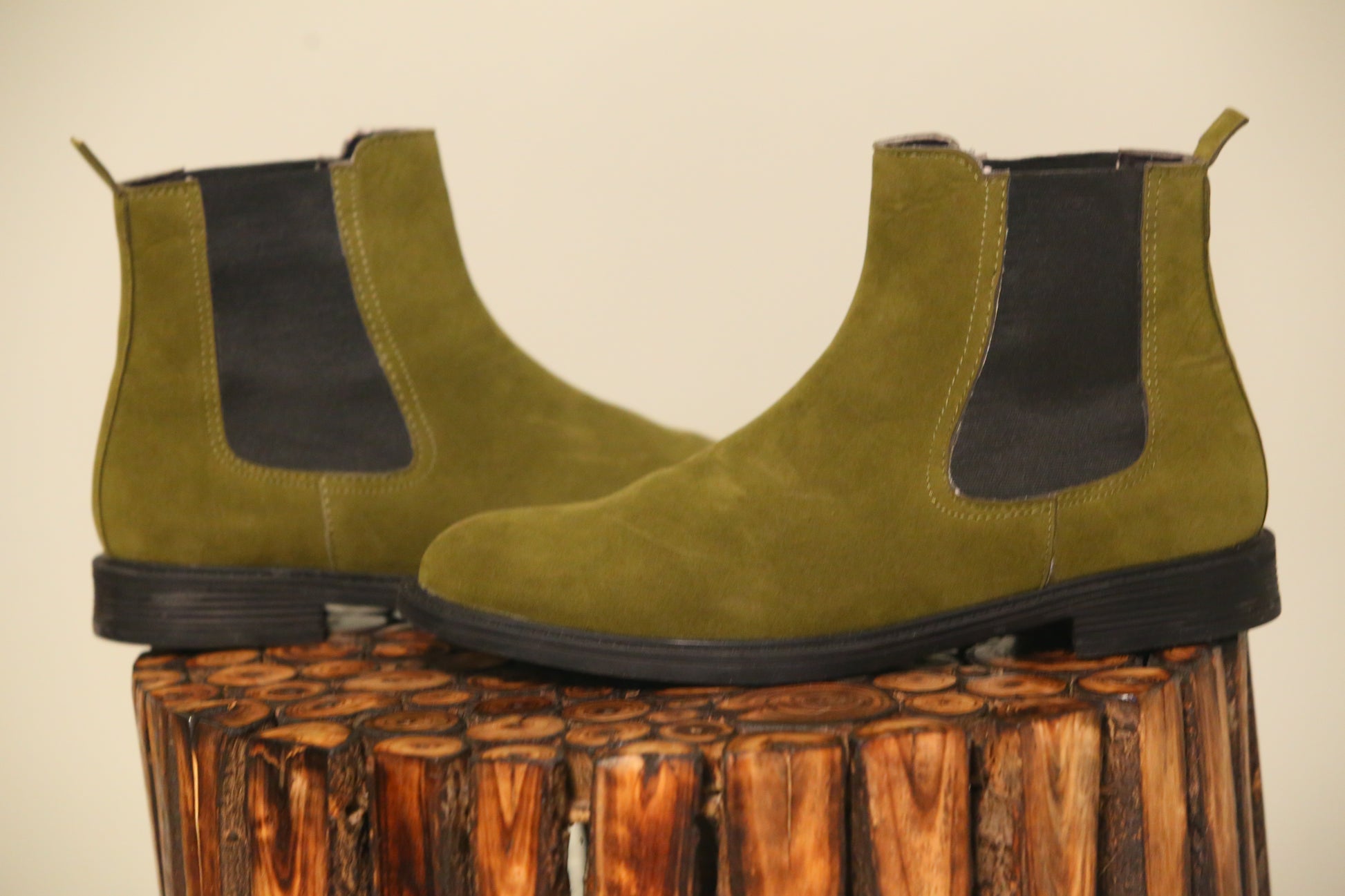 Rajanyas Men Olive green Suede Leather Chelsea Boots