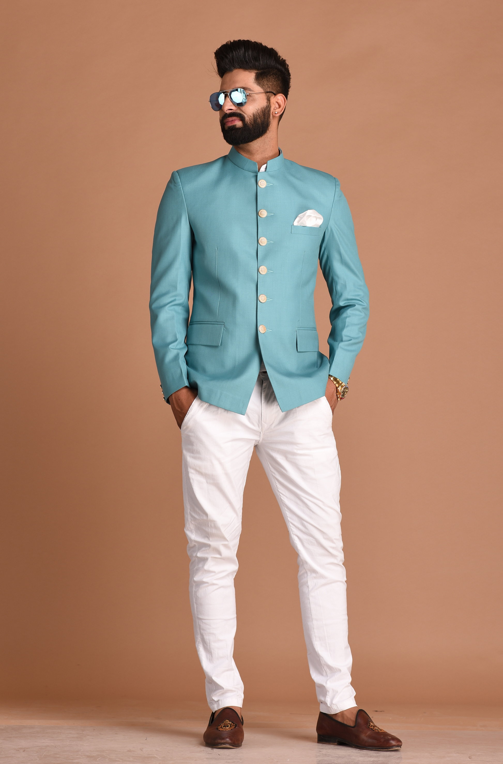 This Oxy Blue Jodhpuri Bandhgala is the best choice to add style, elegance, and sophistication to any formal look. It combines the traditional looks of Indian Bandhgala with a modern twist in its design. This Bandhgala is made with finest quality of Terry Rayon material that enhances the aesthetics of this product even more. It is crafted using traditional tailoring techniques and stitching which ensures durability & strength in this product. For the lining we have used silk, which is smooth, durable and lightweight as well as breathable. It is imperative to have at least one of the timeless classics in your wardrobe.