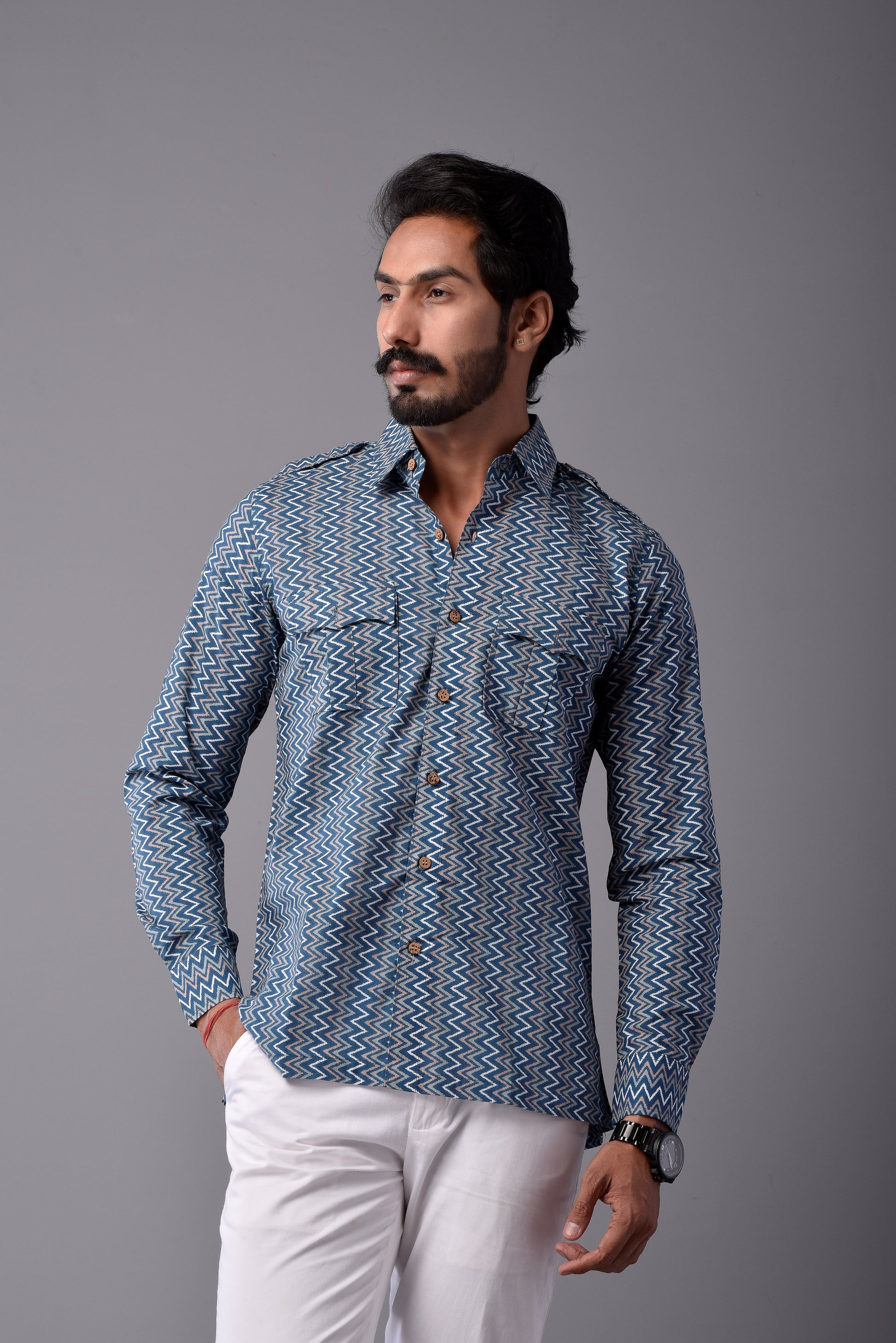 Sanganeri Printed Shirt. These can be mixed and matched to create the perfect outfit. You can team these up with Breeches, Jeans or Cargo. The ergonomic design and features make these Shirts comfortable to wear all day long with excellent shape retention.