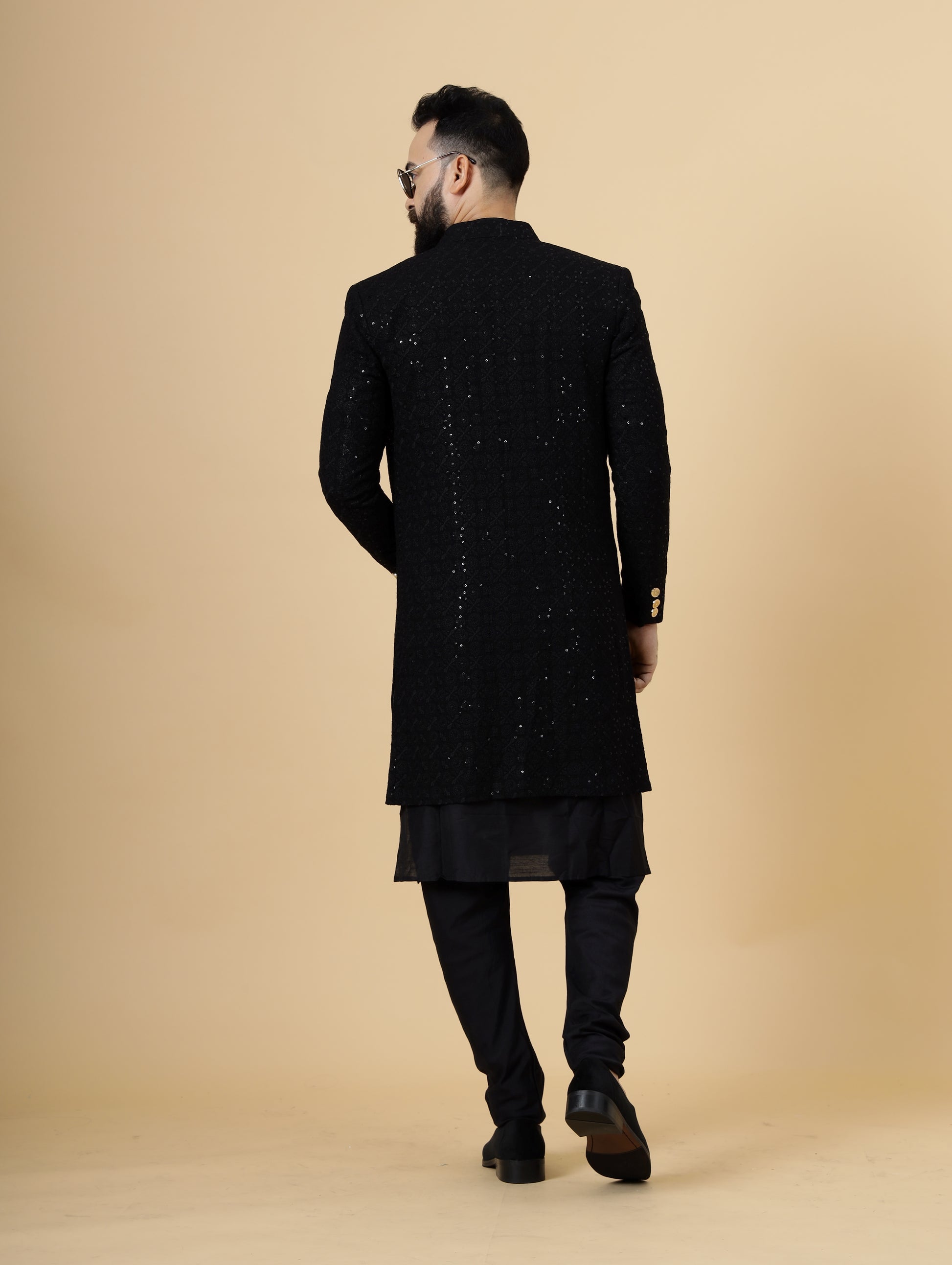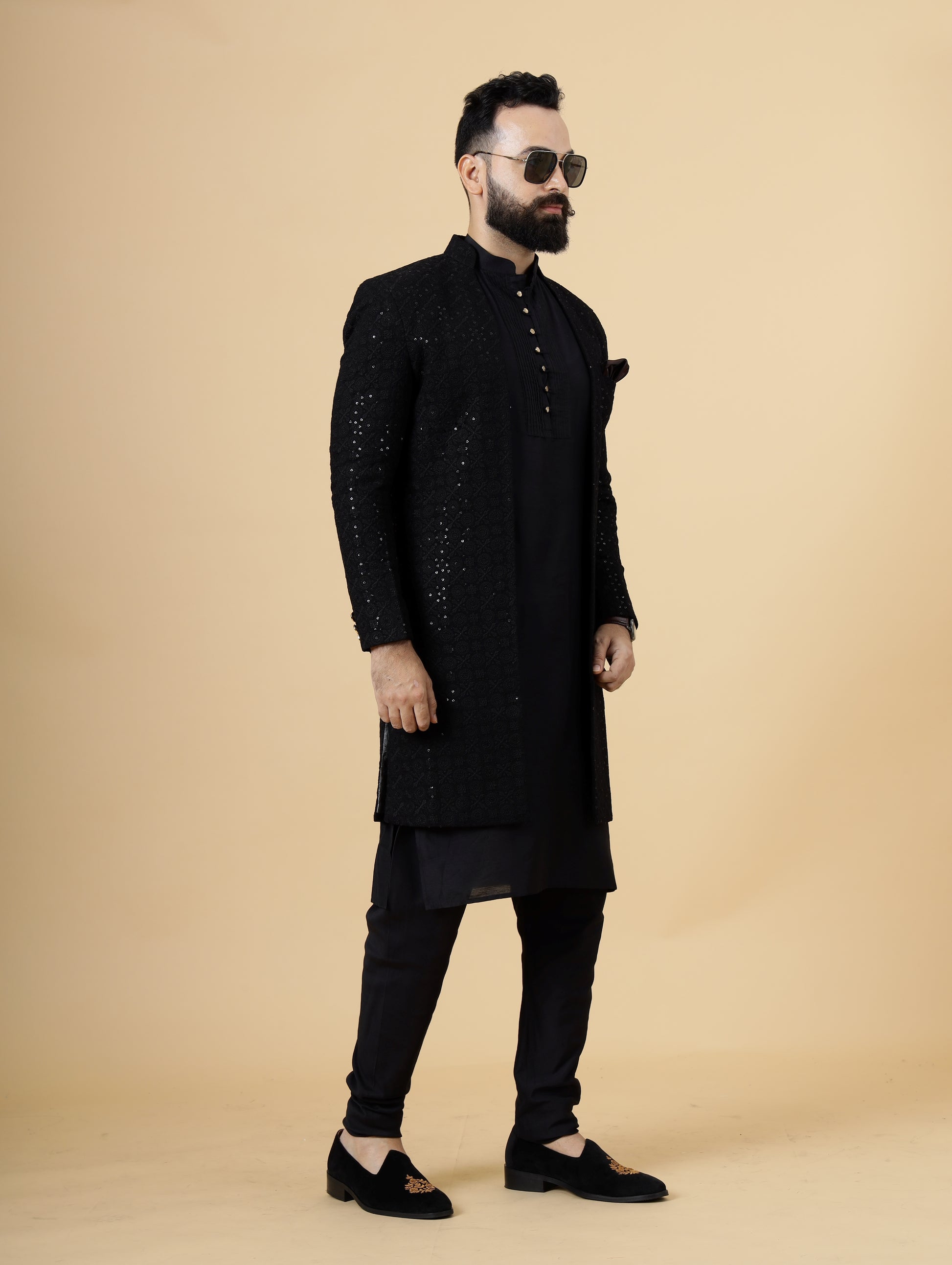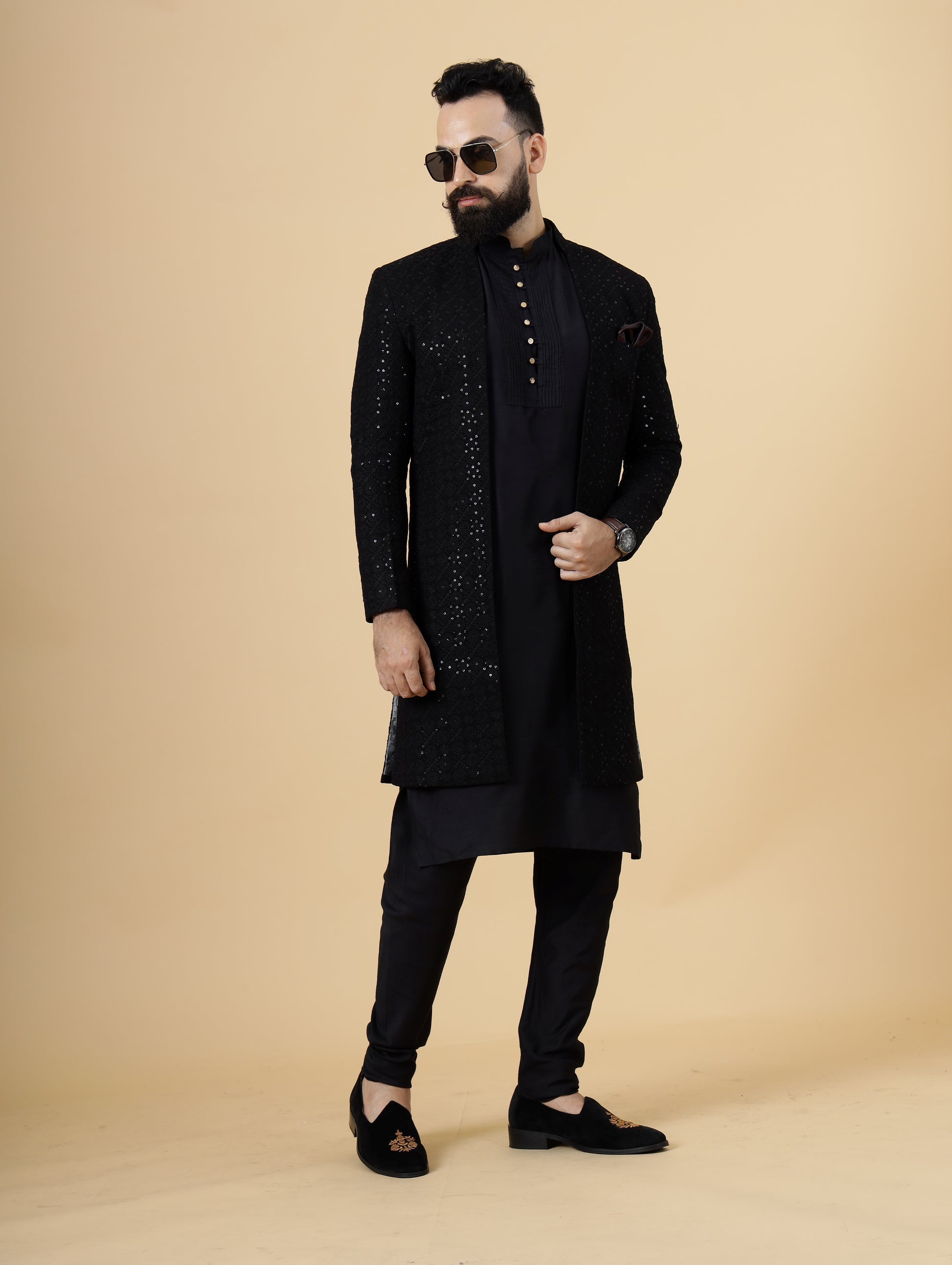 - Color: Sherwani: Black, Kurta: Black, Churidar: Black