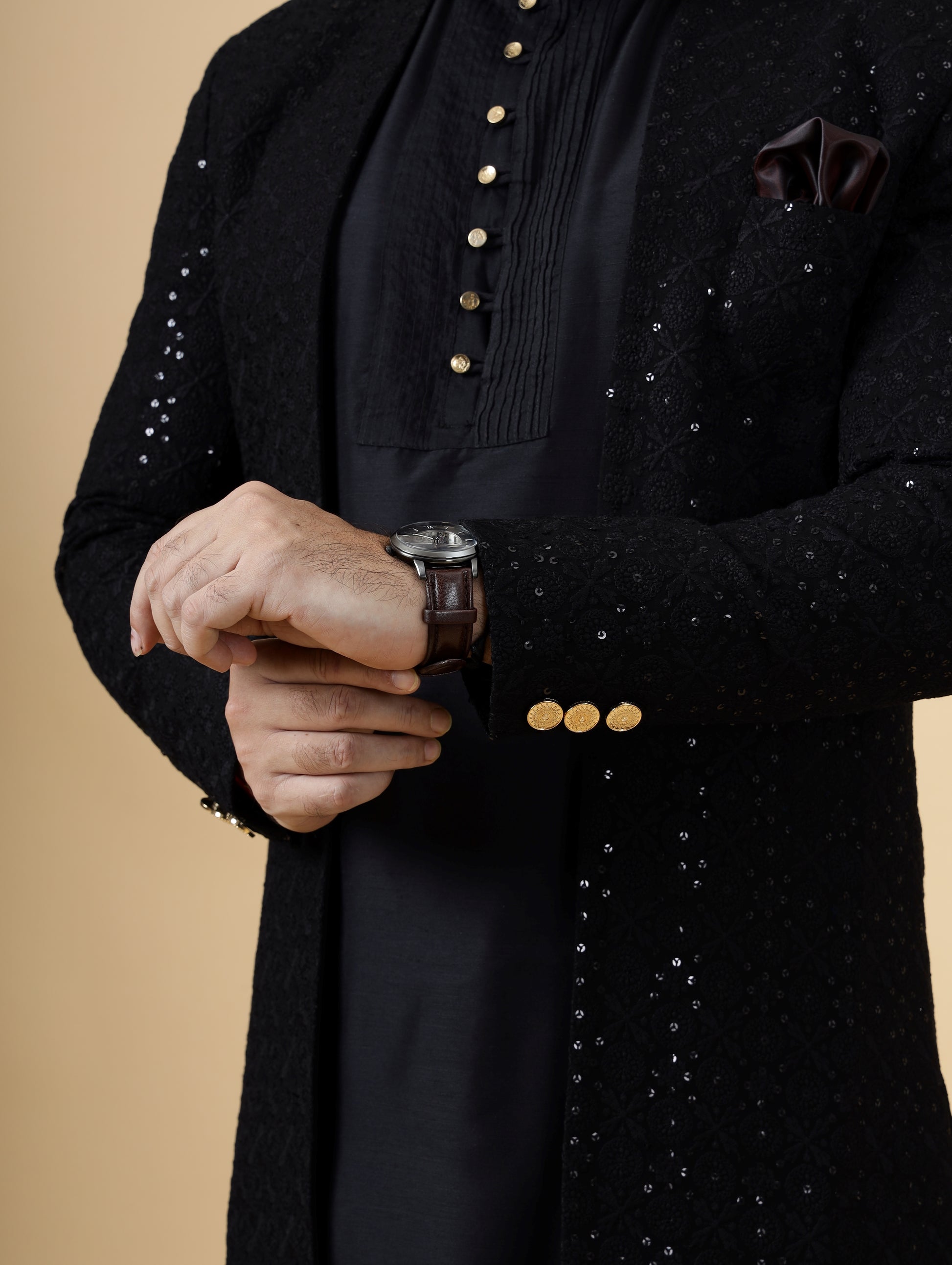 Stunning Black Chikankari Open Sherwani for Men | Father Son Combo | Black Color | Chikankari Sherwani | Perfect for Grooms