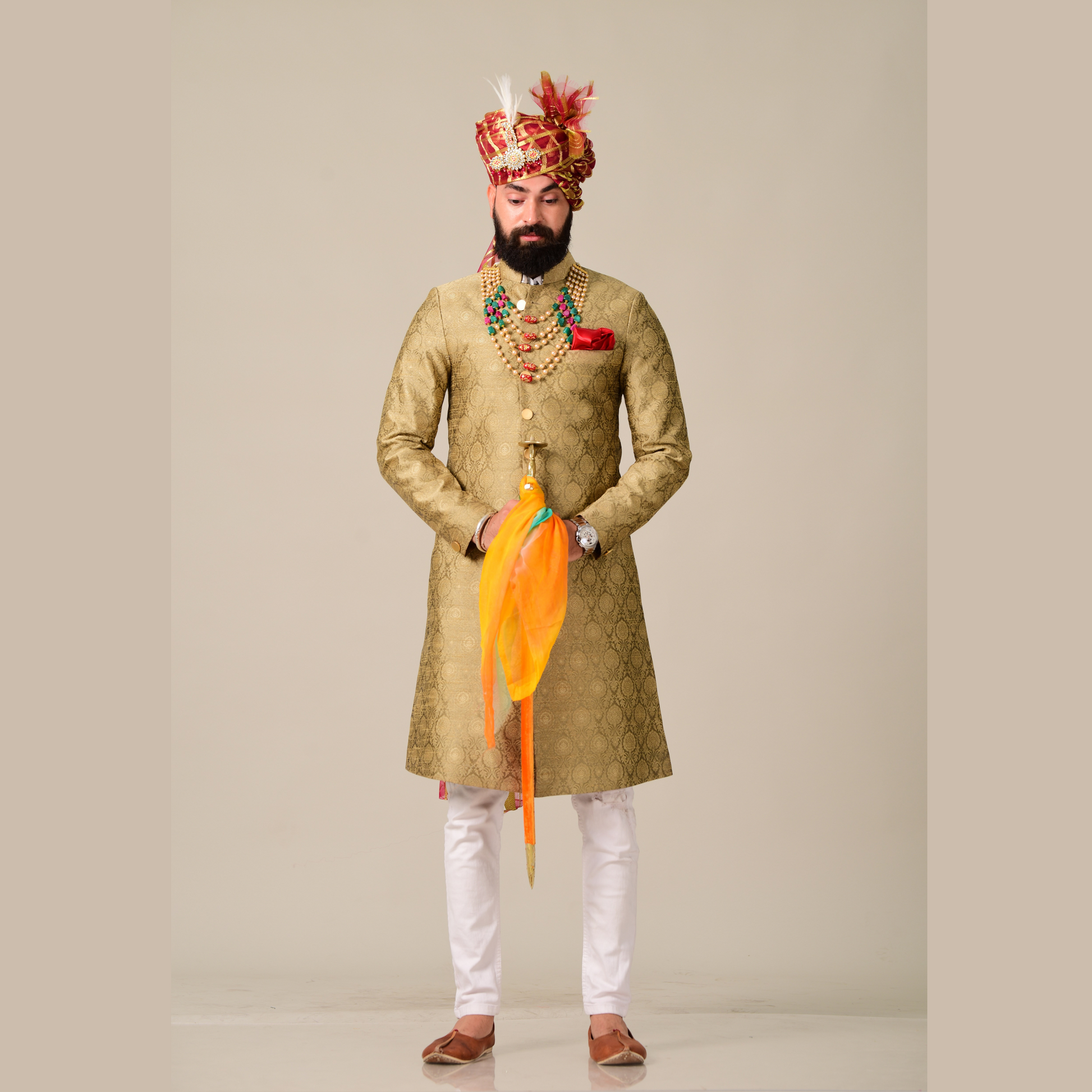 Traditional Pebble Gold Brocade Silk Designer Sherwani