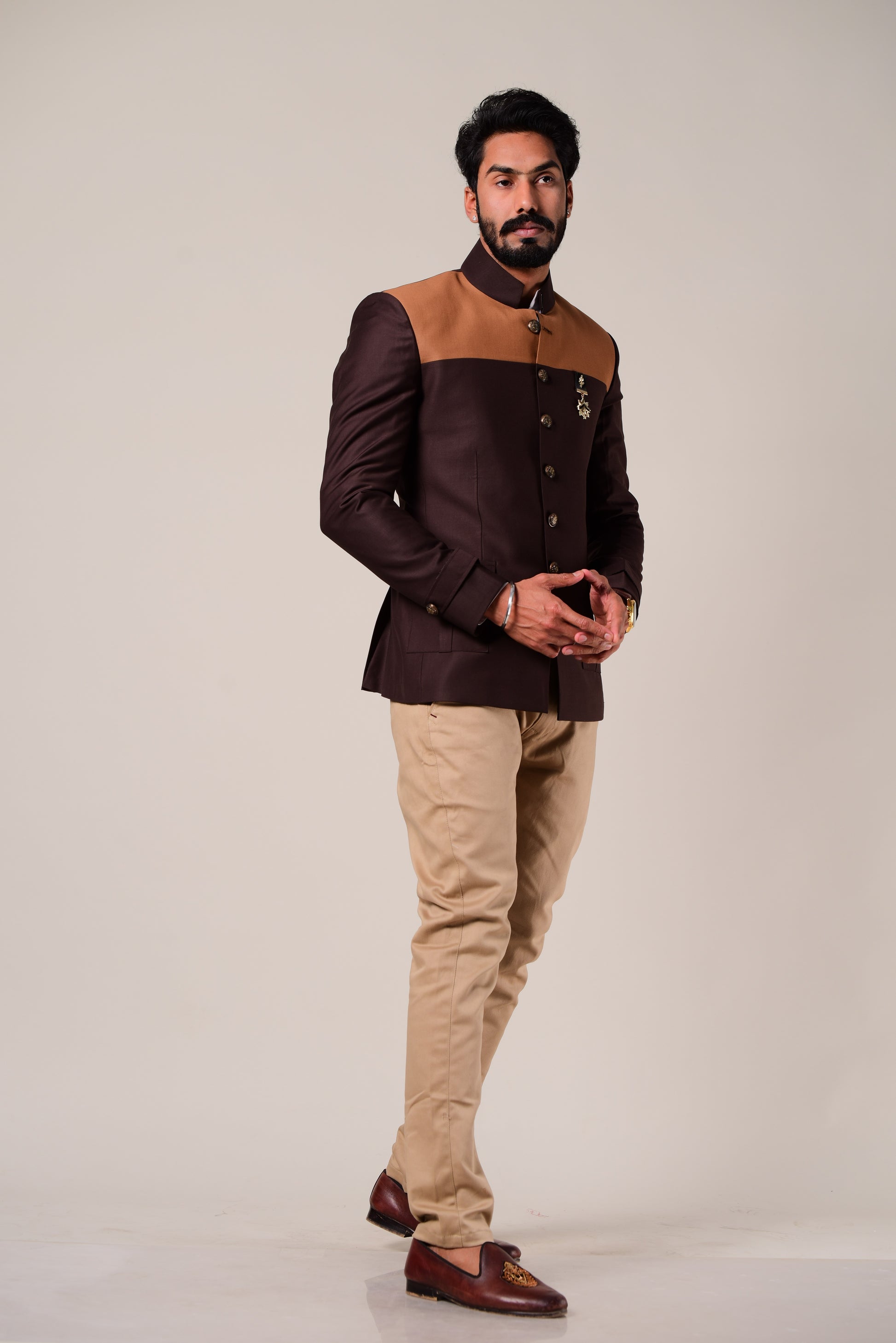 • Color: Umber Brown Bandhgala , FawnTrouser