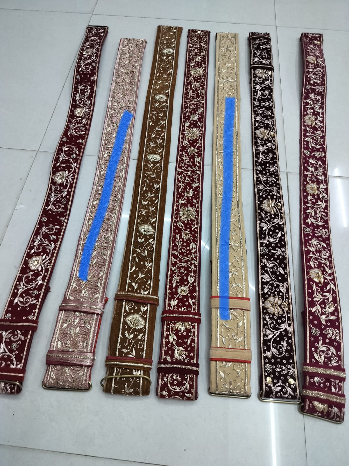 WaistBelts also known as Kamarbandh are worn on Achkan/Sherwani by the Groom and Guests in the marriage. Available in different color and styles, WaistBelts can also be used for holding a Sword. These belts are available in a variety of works & fabrics : Parcha, Kinkhab, Leather, Zari and Zardouji Work.